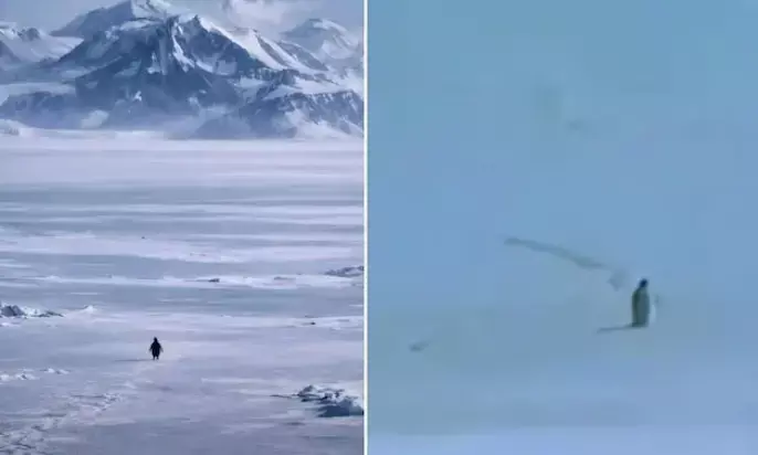 ಜಗತ್ತಿನ ಗಮನ ಸೆಳೆದ ಪೆಂಗ್ವಿನ್ ಪಕ್ಷಿಯ ಒಂಟಿ ನಡಿಗೆ