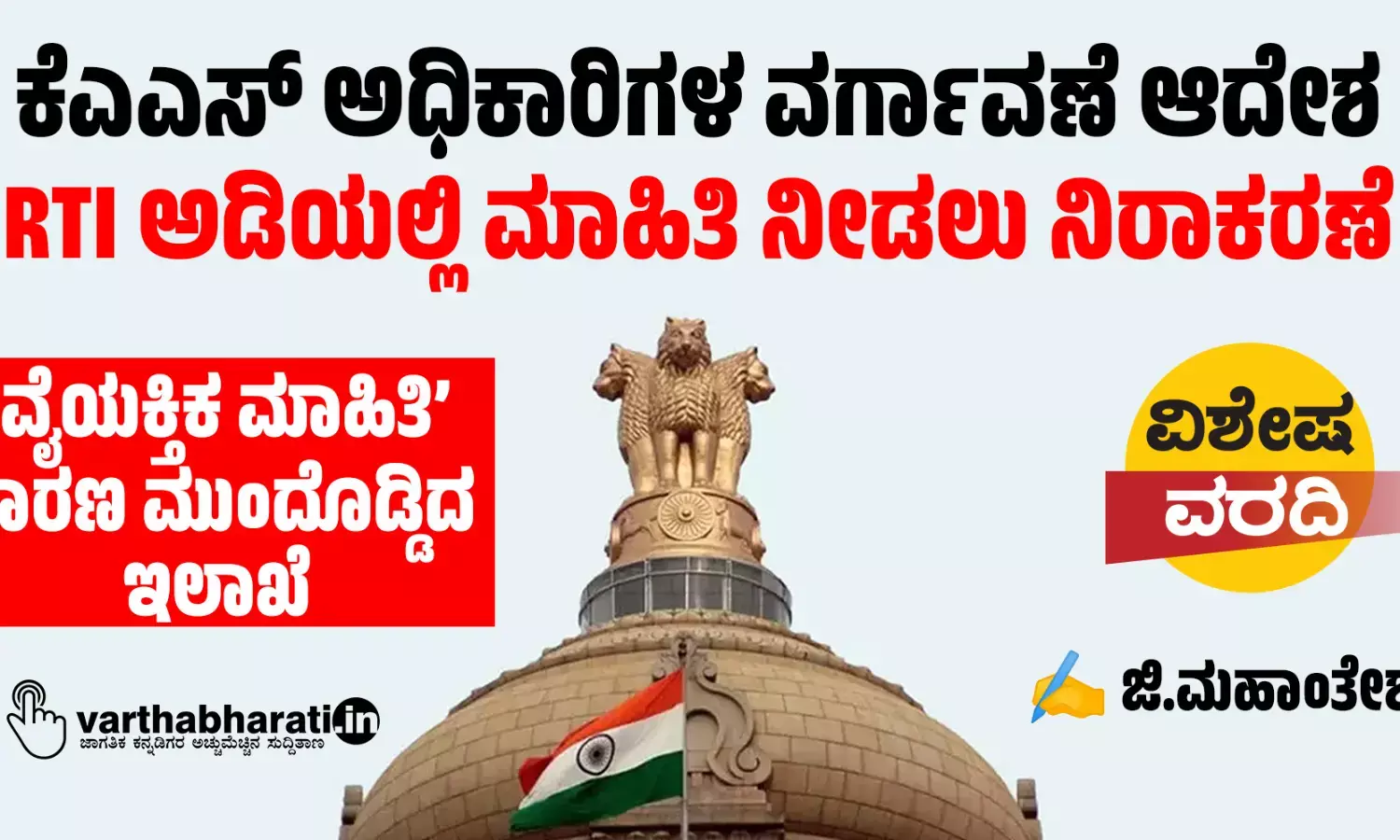 ಕೆಎಎಸ್ ಅಧಿಕಾರಿಗಳ ವರ್ಗಾವಣೆ ಆದೇಶ: RTI ಅಡಿಯಲ್ಲಿ ಮಾಹಿತಿ ನೀಡಲು ನಿರಾಕರಣೆ
