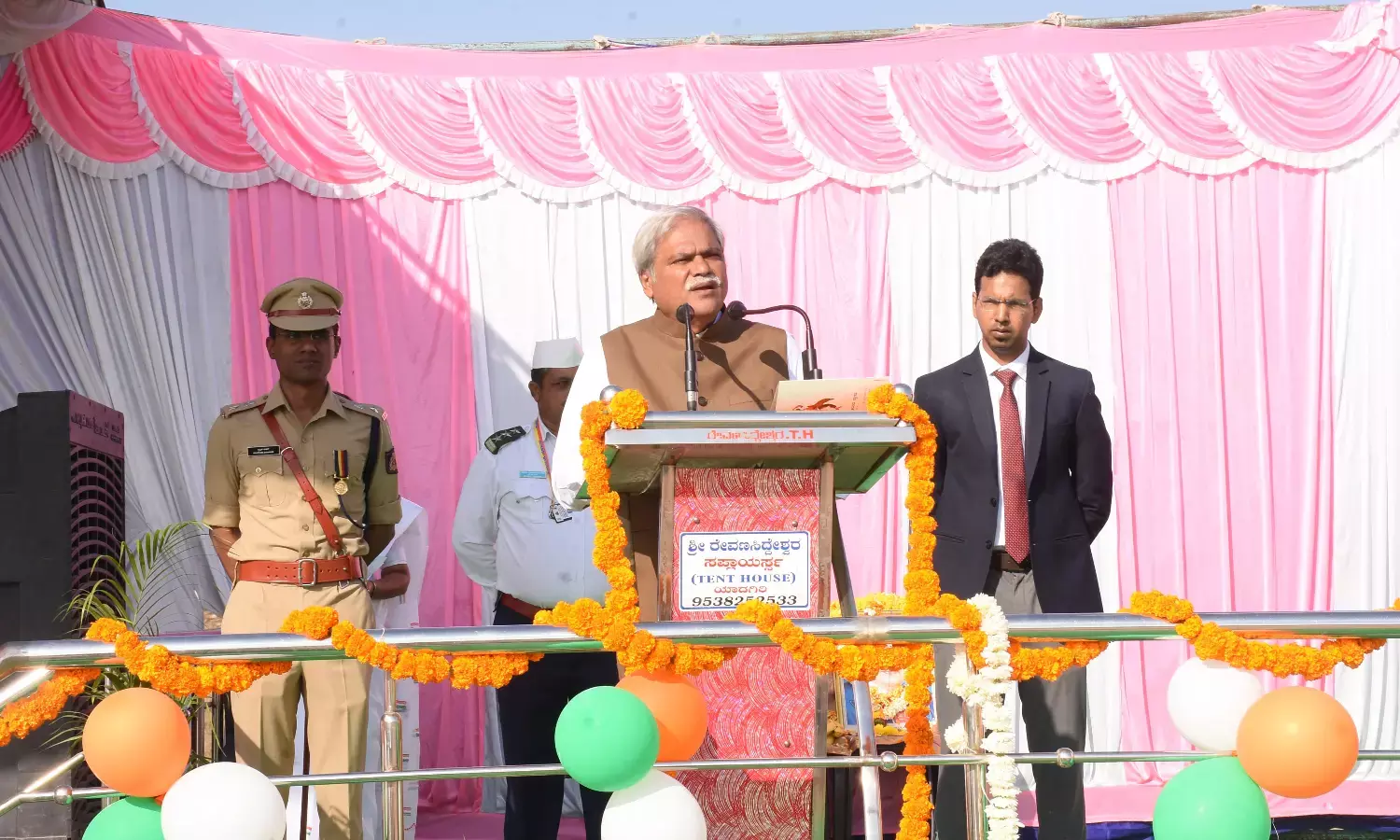 ನಗರದ ಜಿಲ್ಲಾ ಕ್ರೀಡಾಂಗಣದಲ್ಲಿಂದು 76ನೇ ಗಣರಾಜ್ಯೋತ್ಸವ ಅಂಗವಾಗಿ ಧ್ವಜಾರೋಹಣ ನೆರವೇರಿಸಿ, ವಿವಿಧ ಕವಾಯತು ಪಡೆಗಳಿಂದ ಗೌರವ ವಂದನೆ ಸ್ವೀಕರಿಸಿ ಅವರು ಮಾತನಾಡಿದರು.