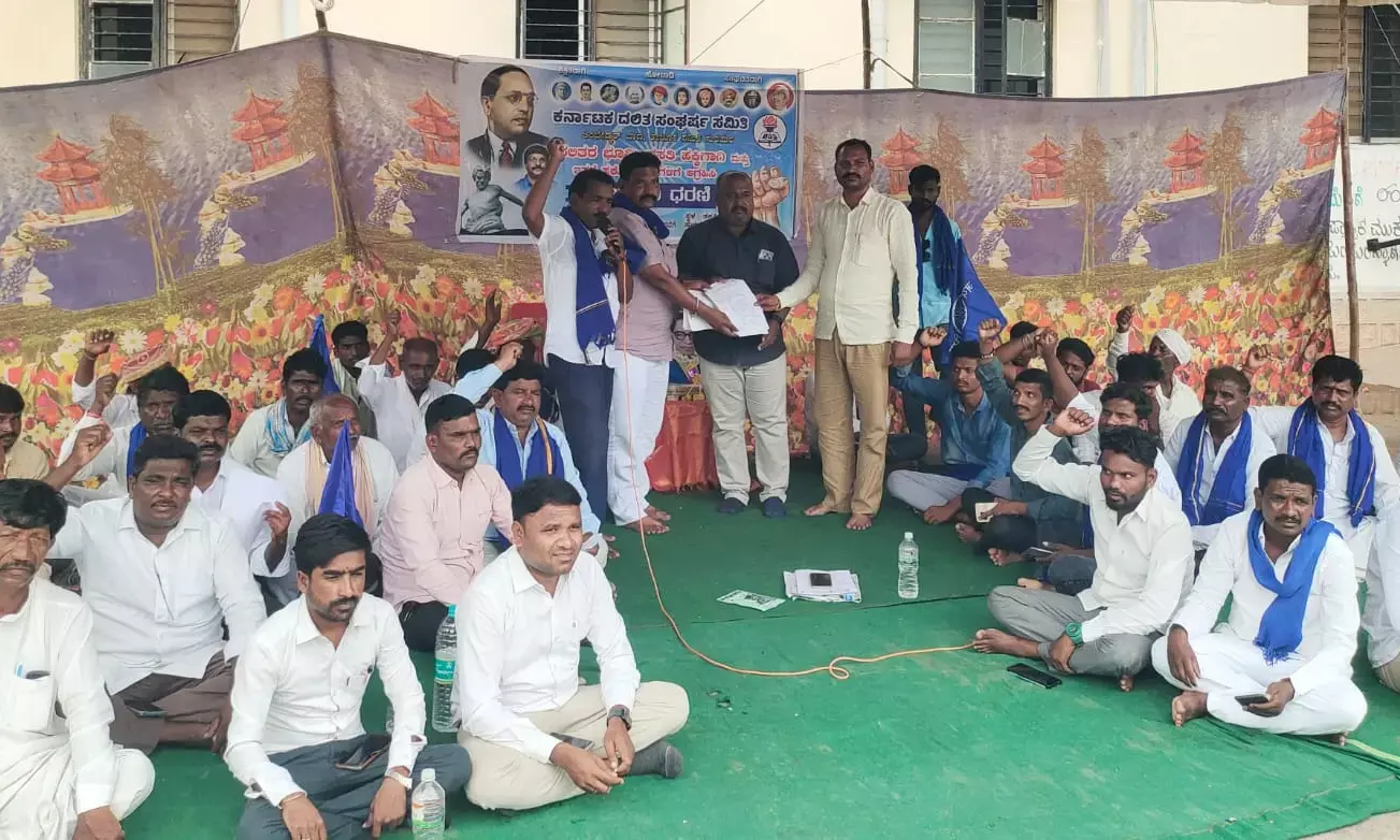 ನಗರದ ತಹಶೀಲ್ದಾರ್ ಕಚೇರಿ ಮುಂದೆ ನಡೆದ ಒಂದು ದಿನದ ಧರಣಿ ಸತ್ಯಾಗ್ರಹದ ನೇತೃತ್ವ ವಹಿಸಿ ಮಾತನಾಡಿದ ಅವರು, ಇಂದು ನಮ್ಮ ಸಂಘಟನೆಯ ರಾಜ್ಯ ಪ್ರಧಾನ ಸಂಚಾಲಕರಾದ ಮಾವಳ್ಳಿ ಶಂಕರ ಅವರ ನೇತೃತ್ವದಲ್ಲಿ ರಾಜ್ಯಾದ್ಯಂತ ಎಲ್ಲಾ ತಹಶೀಲ್ದಾರ್ ಕಚೇರಿಗಳ ಮುಂದೆ ಧರಣಿಯನ್ನು ನಡೆಸಲಾಗಿದ್ದು, ಮುಂಬರುವ ದಿನಗಳಲ್ಲಿ ಮತ್ತಷ್ಟು ಪ್ರತಿಭಟನೆ ನಡೆಸಲಾಗುವುದು ಎಂದು ತಿಳಿಸಿದರು.