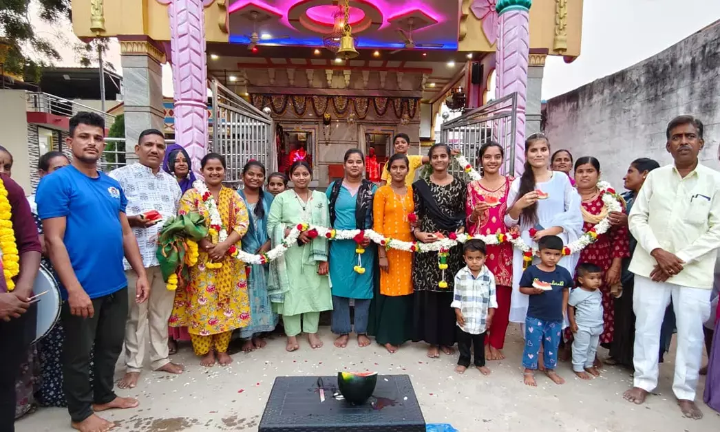 ಇದೇ ಸಂದರ್ಭದಲ್ಲಿ ಆನಂದ ಎಸ್. ರಾಠೋಡ ಅವರ ಮನೆಯಿಂದ ಕಳಸ ಹಾಗೂ ವಿವಿಧ ಪೂಜಾ ಸಾಮಗ್ರಿಗಳೊಂದಿಗೆ ಸೇವಾಲಾಲ್ ಮತ್ತು ಮರಿಯಮ್ಮ ದೇವಿ ಮಂದಿರದವರೆಗೆ ಬಾಜಾ-ಭಜಂತ್ರಿ ವಾದ್ಯಗಳೊಂದಿಗೆ ಮೆರವಣಿಗೆ ನಡೆಸಲಾಯಿತು. ಮಂದಿರದಲ್ಲಿ ವಿಶೇಷ ಪೂಜೆ ನೆರವೇರಿಸಿ ತಂಡದ ಯಶಸ್ಸಿಗಾಗಿ ಪ್ರಾರ್ಥಿಸಲಾಯಿತು.