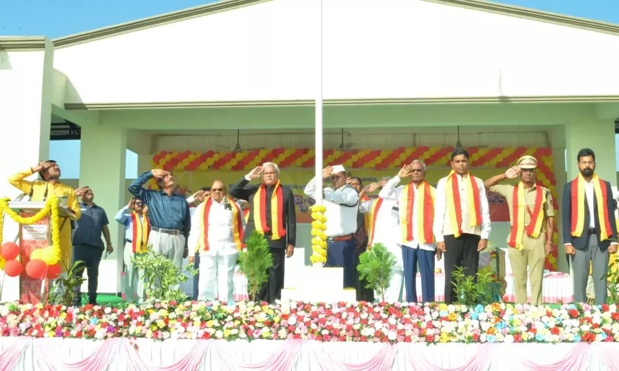 70ನೇ ಕರ್ನಾಟಕ ರಾಜ್ಯೋತ್ಸವ ದಿನಾಚರಣೆ ಅಂಗವಾಗಿ ರಾಷ್ಟ್ರ ಧ್ವಜಾರೋಹಣ ನೆರವೇರಿಸಿ ವಿವಿಧ ಕವಾಯತು ಪಡೆಗಳಿಂದ ಗೌರವ ವಂದನೆ ಸ್ವೀಕರಿಸಿ ಅವರು ಮಾತನಾಡಿದರು.