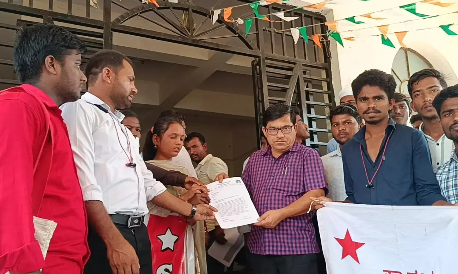 ನಗರದ ಸರಕಾರಿ ಡಿಗ್ರಿ ಕಾಲೇಜು ಆವರಣದಲ್ಲಿ ನಡೆದ ಪ್ರತಿಭಟನೆಯ ಬಳಿಕ, ಎರಡನೇ ದರ್ಜೆಯ ತಹಶೀಲ್ದಾರ್ ಪ್ರಶಾಂತ ಅವರ ಮೂಲಕ ಸರ್ಕಾರಕ್ಕೆ ಮನವಿ ಸಲ್ಲಿಸಲಾಯಿತು.
