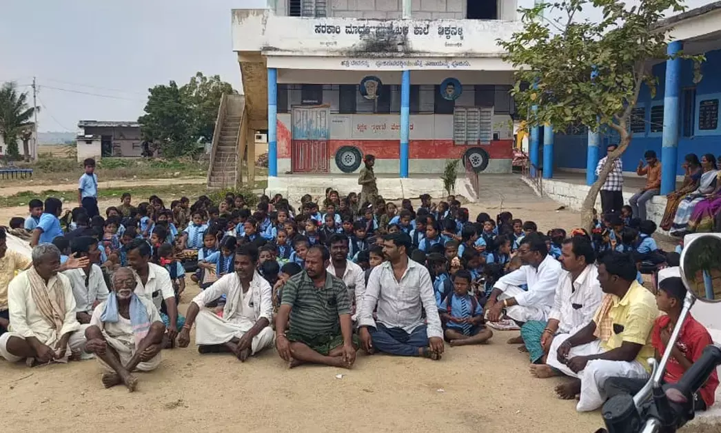 ಶಾಲೆಗೆ ಬೀಗ ಹಾಕಿ ಮಕ್ಕಳೊಂದಿಗೆ ಪಾಲಕರ ಧರಣಿ
