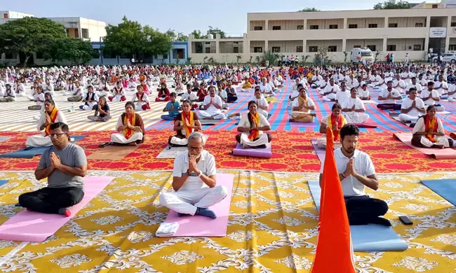 ಯೋಗ ಗುರುಗಳಾದ ಅನೀಲ ಗುರುಜೀ ಅವರು ಶಿಬಿರಾರ್ಥಿಗಳಿಗೆ ಯೋಗ ಹೇಳಿಕೊಟ್ಟು ವಿವಿಧ ಆಸನಗಳು ಮಾಡಿಸಿ, ಮಹತ್ವ ತಿಳಿಸಿದರು. ಯೋಗ ದಿನಾಚರಣೆಯಲ್ಲಿ ಸಾವಿರಾರು ಶಾಲಾ ಮಕ್ಕಳು, ಮಹಿಳೆಯರು, ಪುರುಷರು ಭಾಗವಹಿಸಿದ್ದರು.