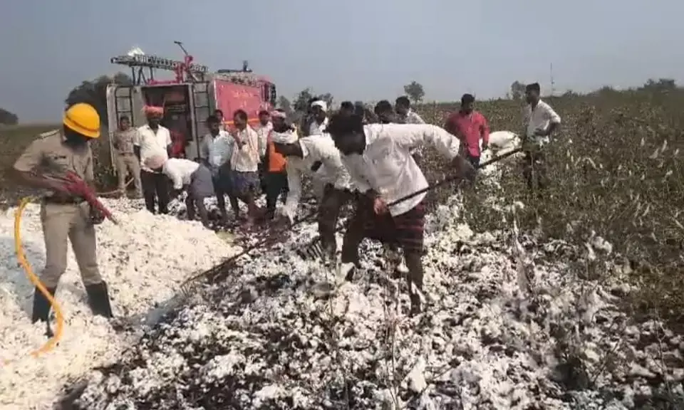 ಯಾದಗಿರಿ| ರೈತನ ಜಮೀನಿನಲ್ಲಿ ಆಕಸ್ಮಿಕ ಬೆಂಕಿ: ಲಕ್ಷಾಂತರ ಮೌಲ್ಯದ ಹತ್ತಿ ಸುಟ್ಟು ಭಸ್ಮ