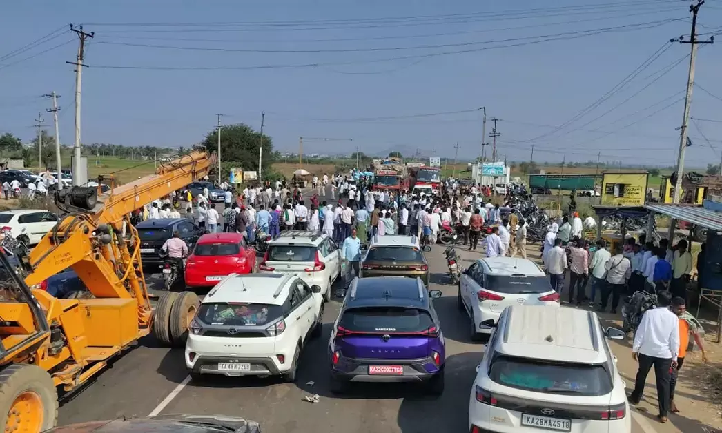ಯಾದಗಿರಿ | ಮನೆ ಹಂಚಿಕೆಯಲ್ಲಿ ಅಕ್ರಮ ಆರೋಪ : ಗುರುಸಣಗಿ ಕ್ರಾಸ್ ಬಳಿ ರೈತ ಸಂಘದಿಂದ ರಸ್ತೆ ತಡೆ ಪ್ರತಿಭಟನೆ