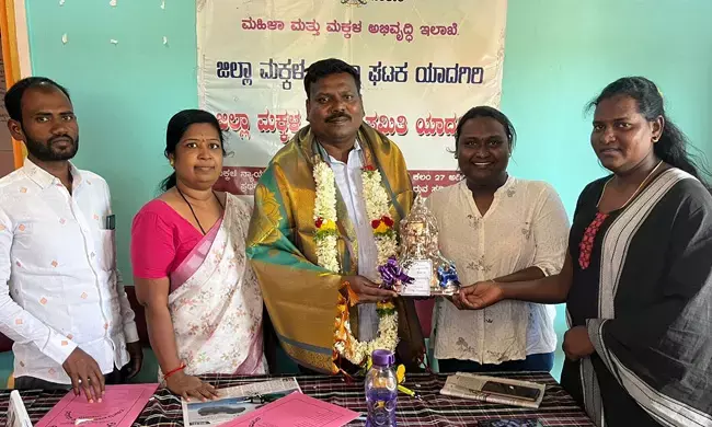 ಯಾದಗಿರಿ : ಮಹಿಳಾ ಮತ್ತು ಮಕ್ಕಳ ಅಭಿವೃದ್ಧಿ ಇಲಾಖೆಯ ಜಿಲ್ಲಾ ಮಕ್ಕಳ ಕಲ್ಯಾಣ ಸಮಿತಿಯ ಅಧ್ಯಕ್ಷರಾಗಿ ನೇಮಕಗೊಂಡ ದಿನೇಶ್ ಕುಮಾರ ಅವರಿಗೆ ಚೇಂಜ್ ಫೌಂಡೇಶನ್ ವತಿಯಿಂದ ಬುದ್ಧನ ವಿಗ್ರಹವನ್ನು ನೀಡಿ ಸನ್ಮಾನ ಮಾಡಲಾಯಿತು