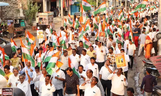 ಗಾಂಧಿ ವೃತದಲ್ಲಿ ಸಮಾವೇಶಗೊಂಡ ಯಾತ್ರೆಯಲ್ಲಿ ನಾಗರಿಕರು ಭಾರತ್ ಮಾತಾ ಕೀ ಜೈ, ಭಾರತೀಯ ಸೈನಿಕರಿಗೆ ಜಯವಾಗಲಿ ಎಂಬ ಘೋಷಣೆ ಕೂಗಿದರು.
