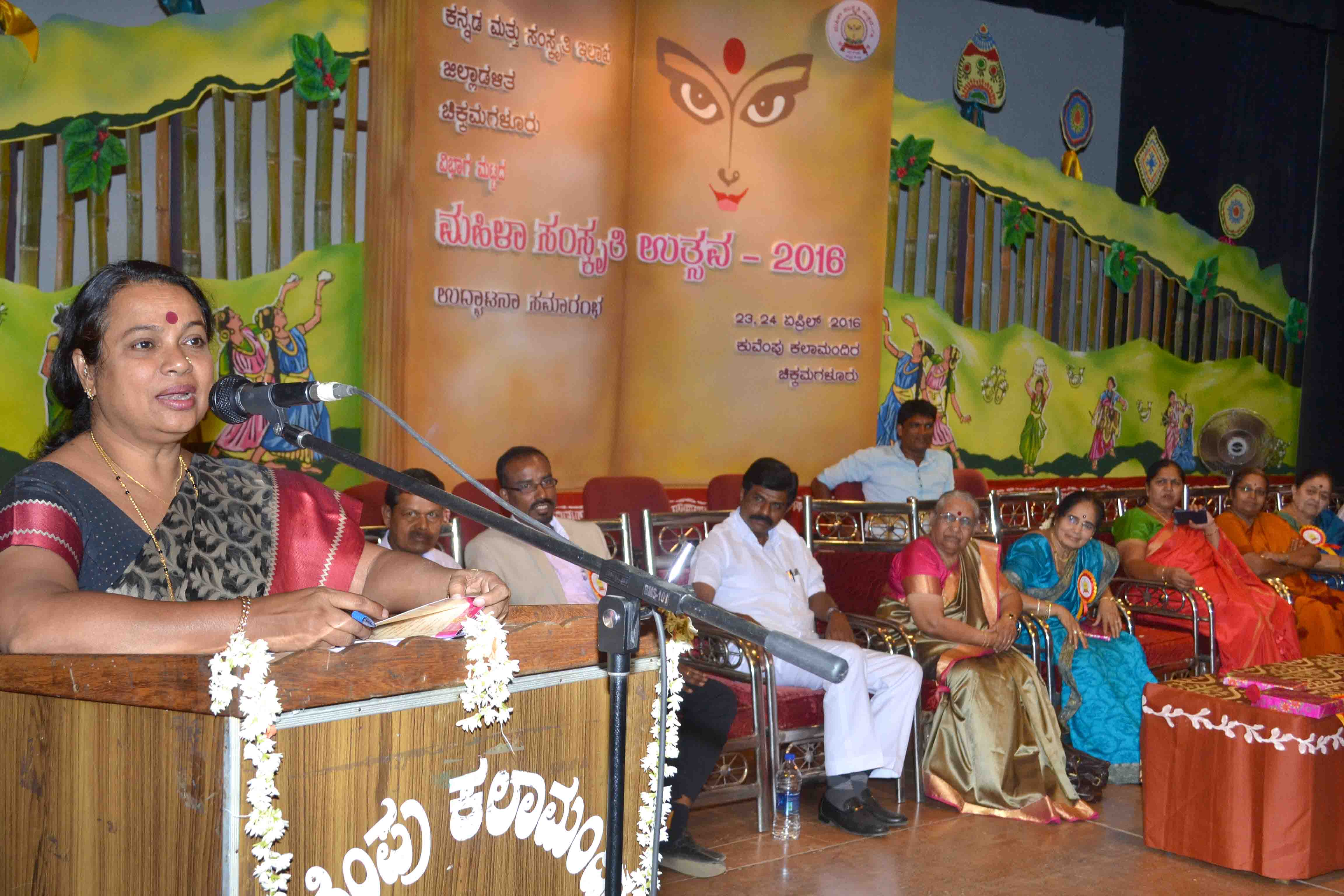 ಇದಕ್ಕೂ ಮುನ್ನ ನಗರದ ಹಳೆ ತಾಲೂಕು ಕಚೆೇರಿ ಆವರಣದಲ್ಲಿ ಮಹಿಳಾ ಸಂಸ್ಕೃತಿ ಉತ್ಸವದ ಅಂಗವಾಗಿ ಆಯೋಜಿಸಲಾಗಿದ್ದ ವಿವಿಧ ಜಾನಪದ ಕಲಾತಂಡಗಳನ್ನು ಒಳಗೊಂಡ ವೈಭವಯುತ ಮೆರವಣಿಗೆಗೆ ನಾಡಿನ ಖ್ಯಾತ ಗಾಯಕಿ ಬಿ.ಕೆ.ಸುಮಿತ್ರಾ ಚಾಲನೆ ನೀಡಿದರು. ಮೆರವಣಿಗೆಯಲ್ಲಿ ಮಹಿಳಾ ವೀರಗಾಸೆ ತಂಡ, ಮಹಿಳಾ ಡೊಳ್ಳು, ಬಂಜಾರನ್ ನೃತ್ಯಗಳು ನೋಡುಗರ ಕಣ್ಮನ ಸೆಳೆದವು. ನಗರದ ಕುವೆಂಪು ಕಲಾಮಂದಿರದ ವೇದಿಕೆಯನ್ನು ಕಲಾವಿದ ಜಗದೀಶ್ ಮತ್ತು ತಂಡದವರು ಬಹು ಸುಂದರವಾಗಿ ವಿನ್ಯಾಸಗೊಳಿಸಿದರು. ಶಾಂತಿನಿಕೇತನ ಕಲಾ ಮಹಾವಿದ್ಯಾನಿಲಯ, ಕನ್ನಡ ಮತ್ತು ಸಂಸ್ಕೃತಿ ಇಲಾಖೆಯ ಸಹಯೋಗದಲ್ಲಿ ನಡೆದ ರಾಷ್ಟ್ರಮಟ್ಟದ ಚಿತ್ರಕಲಾ ಶಿಬಿರದಲ್ಲಿ ಕಲಾವಿದರ ಕುಂಚದಿಂದ ಒಡಮೂಡಿದ ಹಲವು ಕಲಾಕೃತಿಗಳು ಕಾರ್ಯಕ್ರಮಕ್ಕೆ ಇನ್ನಷ್ಟು ಅಂದ ಹೆಚ್ಚಿಸಿತ್ತು.