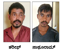 ಬಂಧಿತರನ್ನು ಕಾಸರಗೋಡು ಪನ್ನಿಪ್ಪಾರೆಯ ಮುಕ್ಕಾನ್ ಶರೀಫ್(38) ಮತ್ತು ಉತ್ತರ ಪ್ರದೇಶ ಧನ್ಪುರದ ನಾಥೂರಾಮ್(35) ಎಂದು ಗುರುತಿಸಲಾಗಿದೆ.