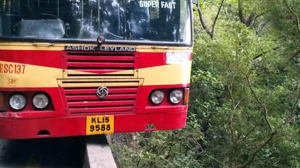ಶನಿವಾರ ಮುಂಜಾನೆ ಸುಮಾರು 3 ಗಂಟೆಗೆ ಕೇರಳ ರಾಜ್ಯ ರಸ್ತೆ ಸಾರಿಗೆ ಬಸ್ ಚಾಲಕ ವಯನಾಡ್ ನಲ್ಲಿ ಬಸ್ ಚಲಾಯಿಸುತ್ತಿರುವಾಗಲೇ ನಿದ್ದೆಗೆ ಜಾರಿದ್ದಾನೆ. ಬಸ್ ನಿಯಂತ್ರಣ ತಪ್ಪಿ ರಸ್ತೆ ಪಕ್ಕಕ್ಕೆ ಜಾರಿದೆ. ಆದರೆ ತಕ್ಷಣ ಎಚ್ಚೆತ್ತ ಚಾಲಕ ಬಸ್ ನಿಯಂತ್ರಿಸಲು ಹೆಣಗಾಡಿದ್ದಾನೆ. ಆಗ ಅದ್ರಷ್ಟವಶಾತ್ ಬಸ್ ರಸ್ತೆ ಬದಿಯ ತಡೆಗೋಡೆಗೆ ಢಿಕ್ಕಿ ಹೊಡೆದು ಅಲ್ಲೇ ನೇತಾಡುತ್ತಾ ನಿಂತು ಬಿಟ್ಟಿದೆ.