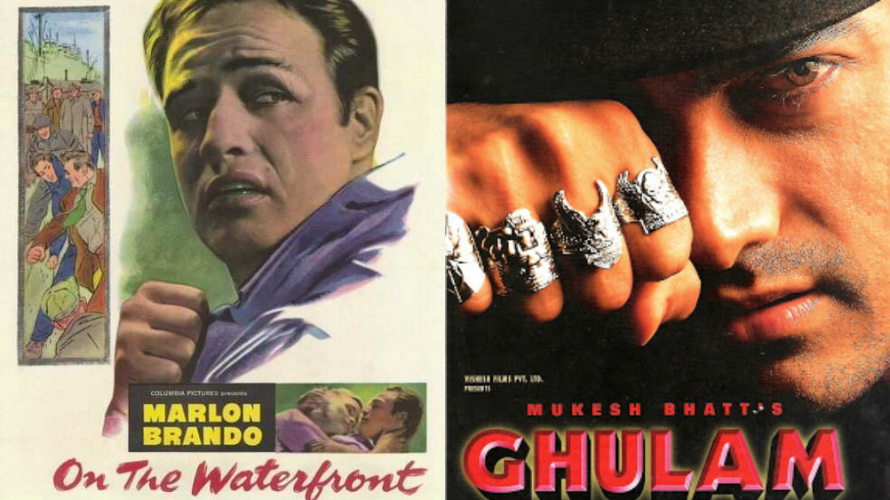 ಒಬ್ಬ ಉದಯೋನ್ಮುಖ ಬಾಕ್ಸರ್ ಒಂದು ಗೂಂಡಾ ಗ್ಯಾಂಗ್ ಗೆ ಕೆಲಸ ಮಾಡಲು ಪ್ರಾರಂಭಿಸುವುದು, ಬಳಿಕ ಕೊಲೆಯೊಂದಕ್ಕೆ ಆತ ಸಾಕ್ಷಿಯಾಗುವುದು, ಆತನ ಅಣ್ಣ ಅದೇ ಗ್ಯಾಂಗ್ ಗಾಗಿ ಕೆಲಸ ಮಾಡುವುದು - ಇವೆಲ್ಲ ಗುಲಾಮ್ ಚಿತ್ರದ ಅಂಶಗಳು ಅದೇ ಬ್ರಾಂಡೊನ ' ಆನ್ ದಿ ವಾಟರ್ ಫ್ರಾಂಟ್ ' ನಲ್ಲಿ ಬಂದಿರುವುದು. ಬ್ರಾಂಡೊ ಆಮಿರ್ ರಂತೆ ಕಾರಿನಿಂದ ಇಳಿದು ಮಳೆಯಲ್ಲಿ ನೆನೆಯುತ್ತಾ ಹಾಡು ಹಾಡುವುದಿಲ್ಲ ಅಷ್ಟೇ .