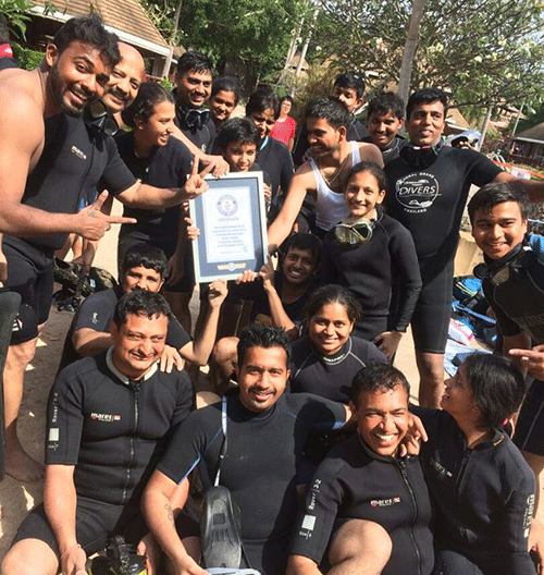 ಪುಣೆಯ ಉದ್ಯಮಿಗಳ ತಂಡವು ತನ್ನ ಪ್ರಥಮ ಪ್ರಯತ್ನದಲ್ಲೇ ಥಾಯ್ಲೆಂಡ್ನ ಕೊಹತಾವೊದ ಸಮುದ್ರದ ಸುಮಾರು 15 ಅಡಿ ಆಳದ ನೀರಿನಲ್ಲಿ ಈ ವಿಶ್ವ ದಾಖಲೆಯನ್ನು ನಿರ್ಮಿಸಿತ್ತು. ಸಾಮಾನ್ಯ ಜನರೂ ವಿಶ್ವ ದಾಖಲೆಯನ್ನು ನಿರ್ಮಿಸಬಲ್ಲರು ಎಂಬುದನ್ನು ಈ ತಂಡವು ಸಾಬೀತು ಪಡಿಸಿತ್ತು. ಈ ತಂಡದಲ್ಲಿ 9 ವರ್ಷದಿಂದ 60 ವರ್ಷ ಪ್ರಾಯದ ಪುಣೆಯ ನಿವಾಸಿಗಳು ಭಾಗವಹಿಸಿದ್ದರು.