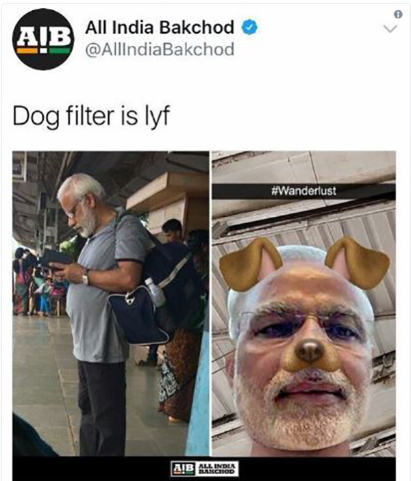 ರೈಲ್ವೆ ನಿಲ್ದಾಣವೊಂದರಲ್ಲಿ ಪ್ರಧಾನಿ ಮೋದಿಯವರನ್ನು ಹೋಲುವ ವ್ಯಕ್ತಿಯೊಬ್ಬರ ಚಿತ್ರವನ್ನು ಅಲ್ ಇಂಡಿಯಾ ಬಕ್ ಚೋದ್ ಟ್ವೀಟ್ ಮಾಡಿತ್ತು. ಇಷ್ಟೇ ಅಲ್ಲದೆ ಇದರ ಜೊತೆಯಿದ್ದ ಇನ್ನೊಂದು ಫೋಟೊದಲ್ಲಿ ಸ್ನ್ಯಾಪ್ ಚಾಟ್ ನ “ಡಾಗ್ ಫಿಲ್ಟರ್” ಉಪಯೋಗಿಸಿ ಮೋದಿಯವರ ಚಿತ್ರವನ್ನೂ ಪೋಸ್ಟ್ ಮಾಡಿತ್ತು. ಇದರಿಂದಾಗಿ ಆಲ್ ಇಂಡಿಯಾ ಬಕ್ ಚೋದ್ ನ ಈ ಟ್ವೀಟ್ ಗೆ ಹಲವರು ಆಕ್ರೋಶ ವ್ಯಕ್ತಪಡಿಸಿದ್ದರು. ಈ ಹಿನ್ನೆಲೆಯಲ್ಲಿ ಬಕ್ ಚೋದ್ ಈ ಟ್ವೀಟನ್ನು ಅಳಿಸಿಹಾಕಿತ್ತು.