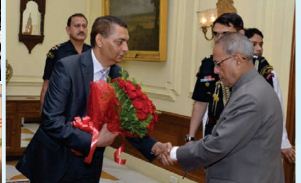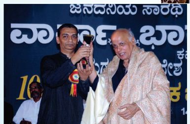 (ಮಾಜಿ ರಾಷ್ಟ್ರಪತಿ ಪ್ರಣವ್ ಮುಖರ್ಜಿಯವರೊಂದಿಗೆ ಬಾಶು)