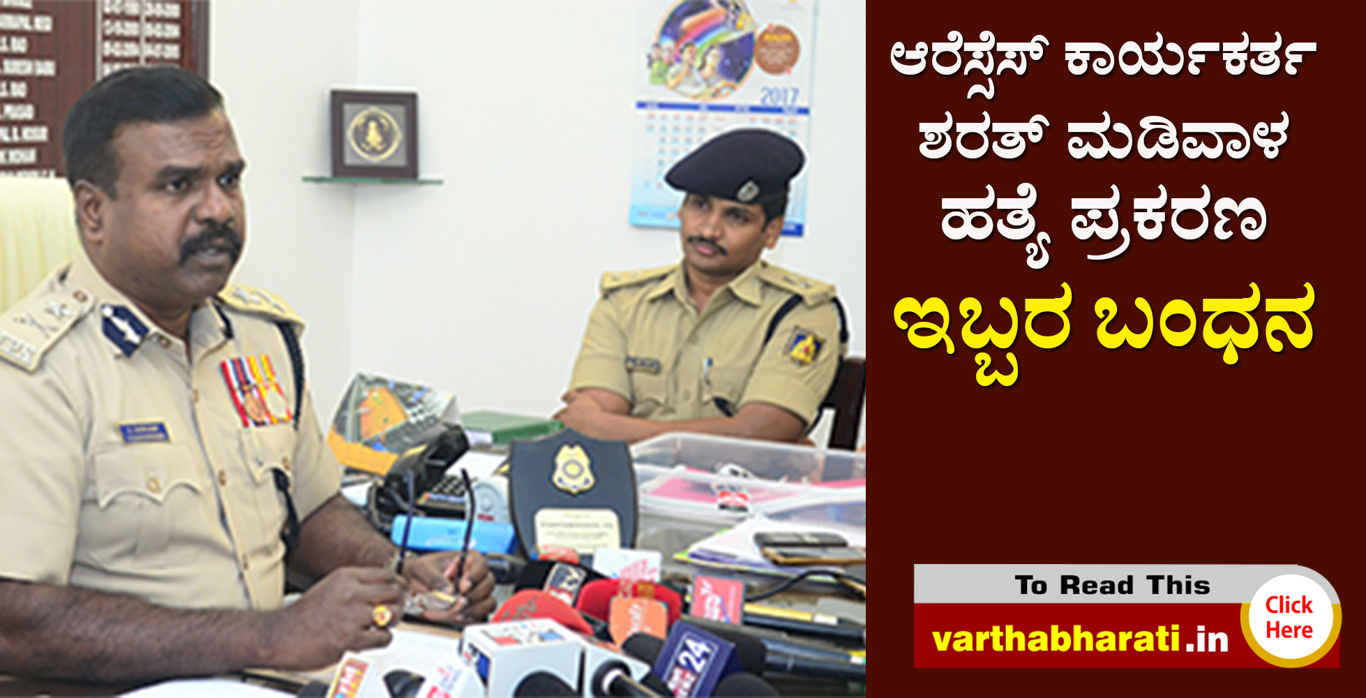 ಆರೆಸ್ಸೆಸ್ ಕಾರ್ಯಕರ್ತ ಶರತ್ ಮಡಿವಾಳ ಹತ್ಯೆ ಪ್ರಕರಣ: ಇಬ್ಬರ ಬಂಧನ