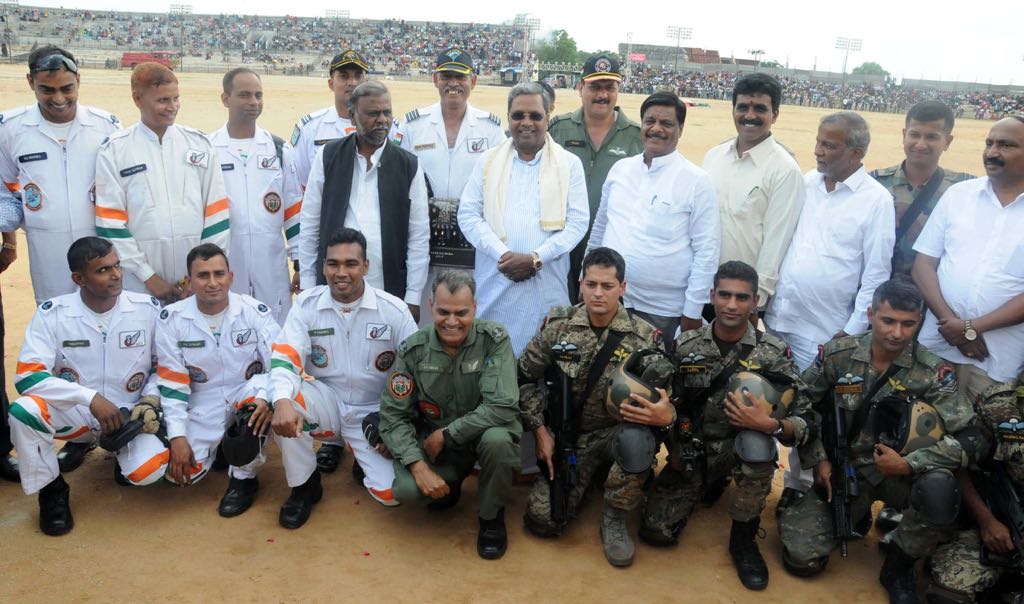 ಮೈಸೂರು, ಸೆ. 29: ದಸರಾ ಉತ್ಸವದ ಅಂಗವಾಗಿ ಮೈಸೂರಿನಲ್ಲಿ ಆಯೋಜಿಸಿದ್ದ ಏರ್ ಶೋಗೆ ಮುಖ್ಯಮಂತ್ರಿ ಚಾಲನೆ ನೀಡಿದರು. ಈ ಸಂದರ್ಭ ಏರ್ ಶೋ ಸಂಬಂಧಿಸಿದ ಅಧಿಕಾರಿಗಳು ಹಾಗೂ ಇತರರು ಉಪಸ್ಥಿತರಿದ್ದರು.
