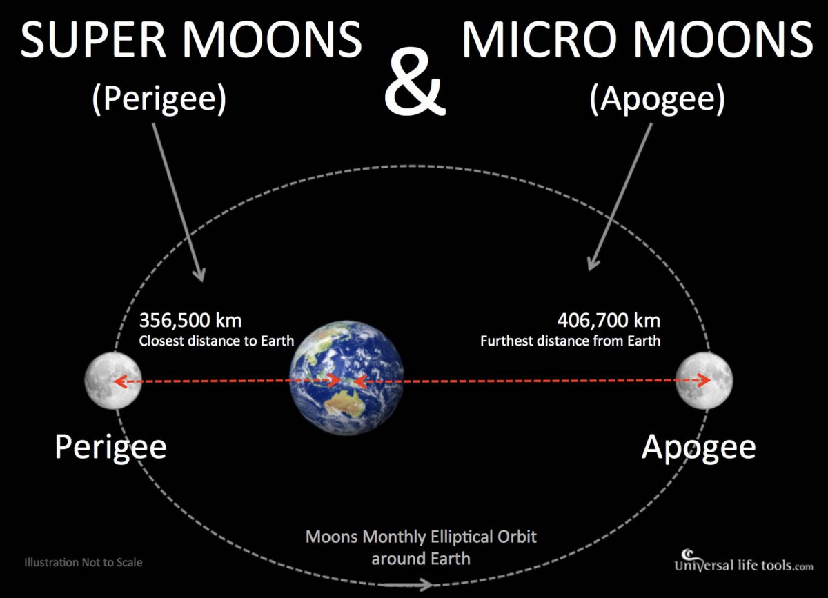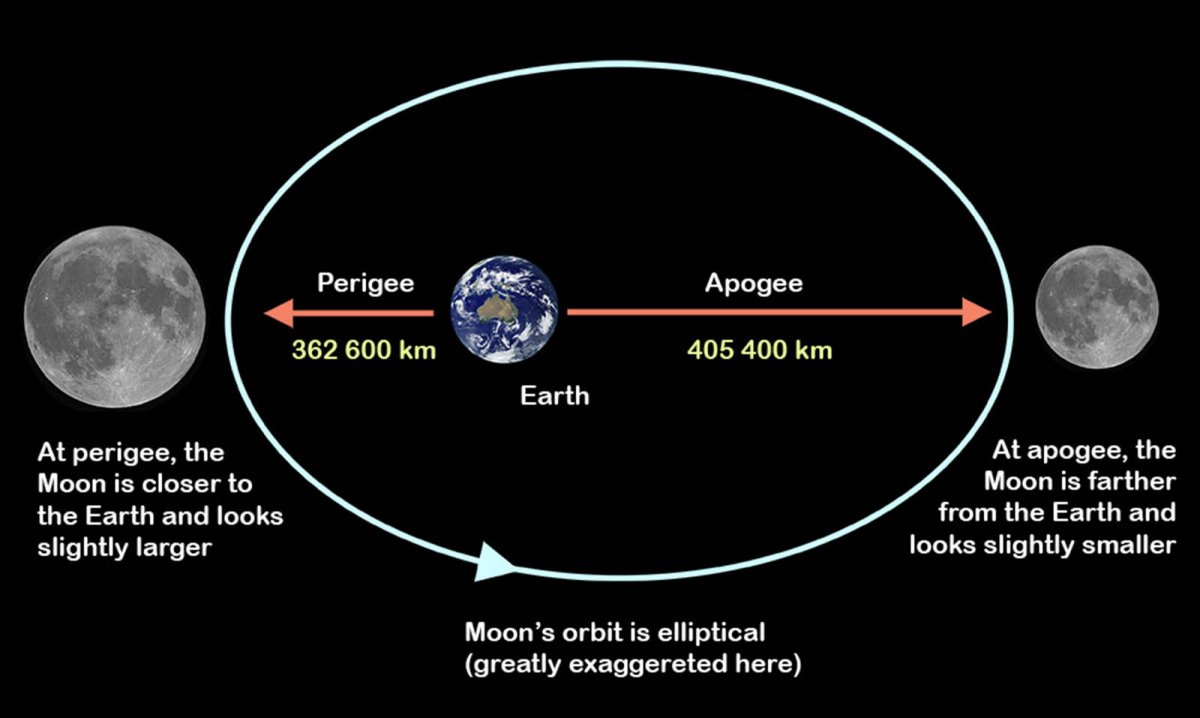 ಎಲ್ಲಾ ಹುಣ್ಣಿಮೆಗಳಲ್ಲೂ ಚಂದ್ರ ಒಂದೇ ಗಾತ್ರದಲ್ಲಿ ಕಾಣುವುದಿಲ್ಲ. ಕೆಲವೊಮ್ಮೆ ಸ್ವಲ್ಪ ಚಿಕ್ಕದಾಗಿ ಕಂಡರೆ, ಕೆಲವೊಮ್ಮೆ ಸ್ವಲ್ಪದೊಡ್ಡದಾಗಿ ಕಾಣುತ್ತದೆ. ಚಿಕ್ಕದಾಗಿದ್ದಾಗ ಬೆಳದಿಂಗಳ ಪ್ರಭೆ ಕಡಿಮೆ. ಹಾಗೆಯೇ ದೊಡ್ಡಾಗಿದ್ದಾಗ ಭವ್ಯ ವಾದ ಬೆಳದಿಂಗಳು. ಇದಕ್ಕೆಲ್ಲ ಕಾರಣ ಚಂದ್ರ ಭೂಮಿಯ ಸುತ್ತ ಸುತ್ತುವ ಪಥ. ಅದು ವೃತ್ತಾಕಾರ ವಲ್ಲ. ದೀರ್ಘ ವೃತ್ತಾಕಾರ ಎಂದು ಅದನ್ನು ಕರೆಯಲಾಗುತ್ತದೆ. ಈ ದೀರ್ಘ ವೃತ್ತದಲ್ಲಿ ಒಮ್ಮೆ ಸಮೀಪ ದೂರ (ಪೆರಿಜೀ), ಅದೇ ರೀತಿ ಒಮ್ಮೆ ದೂರದ ದೂರ (ಅಪೋಜೀ) ಬರುವುದಿದೆ. ಚಂದ್ರ-ಭೂಮಿ ನಡುವಿನ ಸರಾಸರಿ ದೂರ 3,84,000 ಕಿ.ಮೀ. ಆದರೆ ಪೆರಿಜೀಗೆ ಬಂದಾಗ 3,56,000 ಕಿ.ಮೀ. ಹಾಗೆಯೇ ಅಪೋಜೀಗೆ ಬಂದಾಗ 4,06,000 ಕಿ.ಮೀ ದೂರವಿರುತ್ತದೆ.