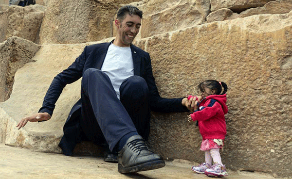ಕೈರೊ, ಜ.28: ಅದು ಅತ್ಯಂತ ಕುತೂಹಲಕರ ಸನ್ನಿವೇಶ. ವಿಶ್ವದ ಅತಿ ಕುಬ್ಜ ಮಹಿಳೆ, ವಿಶ್ವದ ಅತಿ ಎತ್ತರದ ವ್ಯಕ್ತಿಯೊಂದಿಗೆ ಭಾವಚಿತ್ರಕ್ಕೆ ಫೋಸ್ ನೀಡಿದ ಅಪರೂಪದ ಕ್ಷಣ. ಟರ್ಕಿಯ ಸುಲ್ತಾನ್ ಕೊಸೆನ್ ಎತ್ತರ 8 ಅಡಿ 9 ಇಂಚು. ಇವರನ್ನು ಭೇಟಿಯಾದದ್ದು ಜ್ಯೋತಿ ಅಮ್ಗೆ ಎಂಬ ವಿಶ್ವದ ಅತಿ ಕುಬ್ಜ ಮಹಿಳೆ. ಈಕೆಯ ಎತ್ತರ 62.8 ಸೆಂಟಿಮಿಟರ್ ಅಂದರೆ 2 ಅಡಿ 6 ಇಂಚು. ನಾಗ್ಪುರದ ಅಮ್ಗೆ ತನ್ನ ಕುಬ್ಜತೆಗಾಗಿ ಗಿನ್ನಿಸ್ ದಾಖಲೆ ಹೊಂದಿದ್ದಾರೆ.