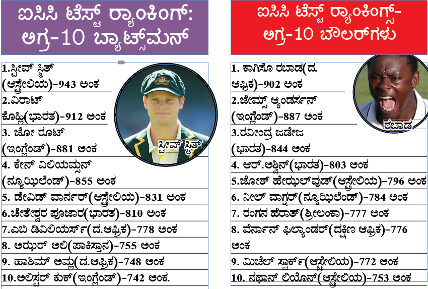 ಐಸಿಸಿ ಟೆಸ್ಟ್ ರ್ಯಾಂಕಿಂಗ್: ದಕ್ಷಿಣ ಆಫ್ರಿಕದ ರಬಾಡ ನಂ.1 ಬೌಲರ್
