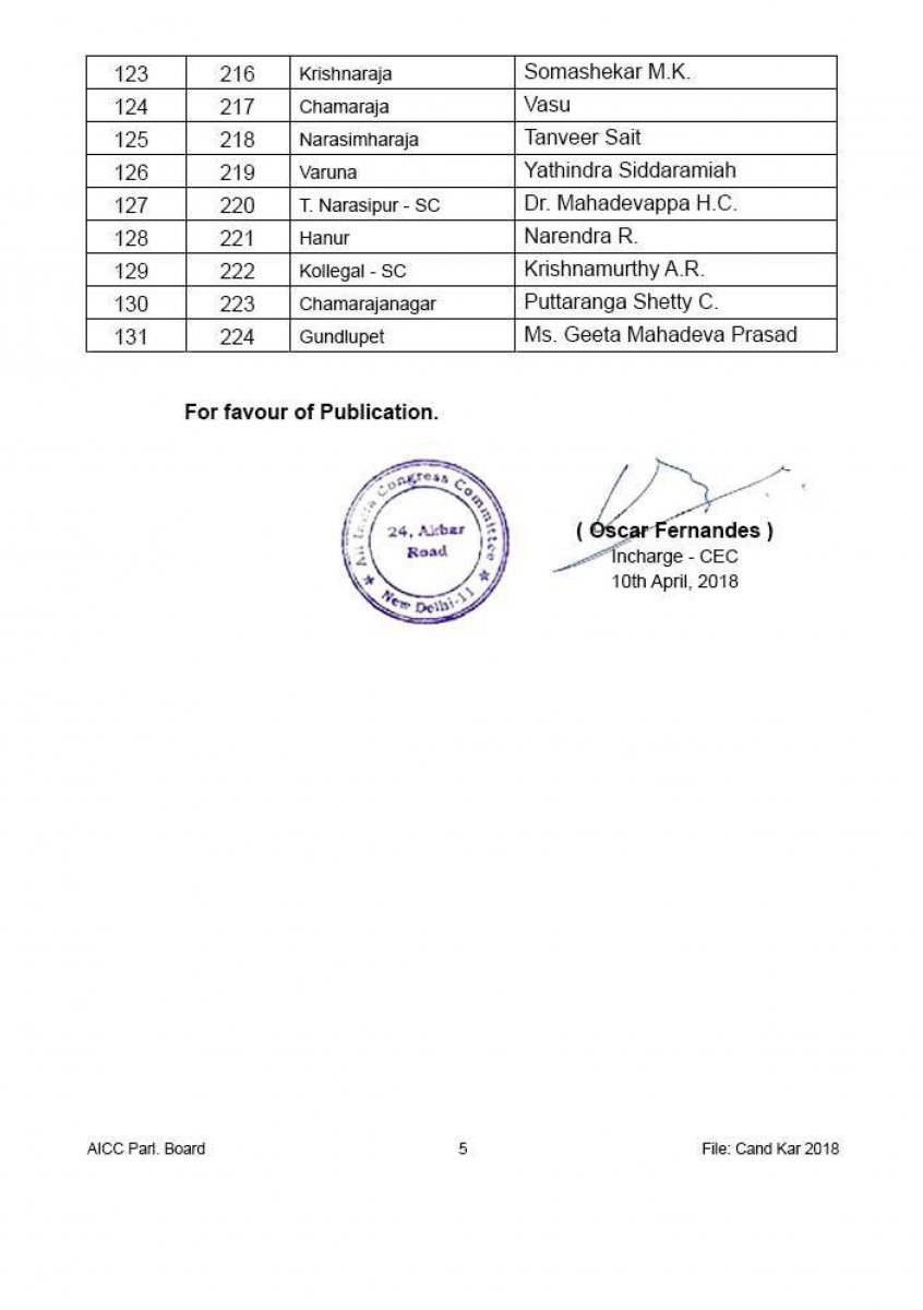 ರಾಜ್ಯ ವಿಧಾನಸಭಾ ಚುನಾವಣೆಯ ಹೊಸ್ತಿಲಲ್ಲಿರುವ ಕರ್ನಾಟಕದಲ್ಲಿ 131 ಕ್ಷೇತ್ರಗಳಲ್ಲಿ ಸ್ಪರ್ಧಿಸಲಿರುವ ಕಾಂಗ್ರೆಸ್ ಅಭ್ಯರ್ಥಿಗಳ ಹೆಸರುಗಳು ಎನ್ನಲಾದ ಪಟ್ಟಿಯೊಂದು ಸಾಮಾಜಿಕ ಜಾಲತಾಣದಲ್ಲಿ ಹರಿದಾಡಿತ್ತು. ಇಷ್ಟೇ ಅಲ್ಲದೆ ಈ ಪಟ್ಟಿಯಲ್ಲಿ ಎಐಸಿಸಿಯ ಸೀಲನ್ನು ಬಳಸಲಾಗಿತ್ತು.