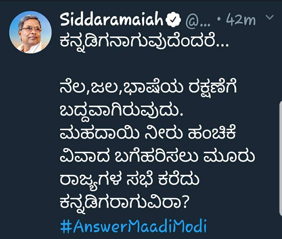 ಕನ್ನಡಿಗನಾದರೆ ನೆಲ, ಜಲ, ಭಾಷೆಯ ರಕ್ಷಣೆಗೆ ಬದ್ಧವಾಗಿರುವುದು. ಮಹದಾಯಿ ನೀರು ಹಂಚಿಕೆ ವಿವಾದ ಬಗೆಹರಿಸಲು ಮೂರು ರಾಜ್ಯಗಳ ಸಭೆ ಕರೆದು ಕನ್ನಡಿಗರಾಗುತ್ತೀರಾ ಎನ್ನುವುದು ಎರಡನೇ ಪ್ರಶ್ನೆ.