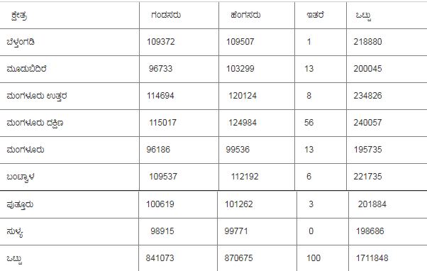 8 ವಿಧಾನಸಭಾ ಕ್ಷೇತ್ರಗಳ ಮತದಾರರ ಪಟ್ಟಿ: ವಿಧಾನಸಭಾ ಕ್ಷೇತ್ರ ಮತದಾರರ ಸಂಖ್ಯೆ