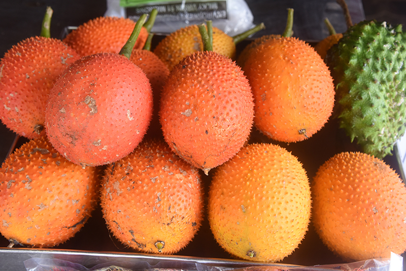 ಸದ್ಯ ಮಂಗಳೂರು ಮಾರುಕಟ್ಟೆಯಲ್ಲೆಲ್ಲೂ ಲಭ್ಯವಾಗದ ಗ್ಯಾಕ್ ಫ್ರೂಟ್ ಹಣ್ಣುಗಳ ಸಂತೆಯಲ್ಲಿ ಕಾಣಬಹುದು. ಅವಕಾಡೊ ರೀತಿಯ ಸೌಮ್ಯ ರುಚಿಯನ್ನು ಹೊಂದಿರುವ ಈ ಹಣ್ಣನ್ನು ಜ್ಯೂಸ್ಗಾಗಿ ಬಳಸಲಾಗುತ್ತದೆ. ಮೂಡಬಿದ್ರೆಯ ಬೆಳುವಾಯಿಯ ಉದಯ ಕುಮಾರ್ ಅವರು ಬೆಳೆದಿರುವ ಬಳ್ಳಿಯಲ್ಲಿ ಈ ಹಣ್ಣು ಇದೇ ಮೊದಲ ಬಾರಿಗೆ ಇಳುವರಿಯನ್ನು ನೀಡಿದೆ. ನೇಪಾಳದಲ್ಲಿ ಝೂಸ್ ಕರೇಲಾ ಎಂದು ಕರೆಯುವ ಈ ಹಣ್ಣು ಆಗ್ನೇಯ ಏಷ್ಯಾದ ಮೂಲಕ ಈಶಾನ್ಯ ಆಸ್ಟ್ರೇಲಿಯಾಕ್ಕೆ, ಬಳಿಕ ದಕ್ಷಿಣ ಚೀನಾದ ಮೂಲಕ ಇದೀಗ ಮಂಗಳೂರಿನಲ್ಲಿಯೂ ಲಭ್ಯವಾಗಿದೆ. ಮಲೇಷಿಯಾದಲ್ಲಿ ಇದನ್ನು ಟೆರುವಾ ಎಂದು ಕರೆಯಲಾಗುತ್ತಿದ್ದು, ಅತೀ ಹೆಚ್ಚು ಕಾರ್ಬೊಹೈಡ್ರೇಟ್ನಿಂದ ಕೂಡಿದ ಈ ಹಣ್ಣು ನೋಡಲು ಮಾತ್ರ ಅಪರೂಪಲ್ಲ, ರುಚಿಯಲ್ಲೂ ಅಪರೂಪ ಎನ್ನುತ್ತಾರೆ ಉದಯ ಕುಮಾರ್.