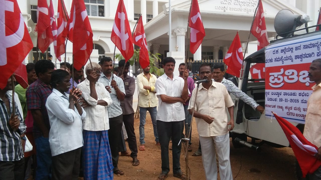 ಸಿಐಟಿಯು ಕಾರ್ಯದರ್ಶಿ ರಾಮಣ್ಣ ವಿಟ್ಲ ಮಾತನಾಡಿ, ಮೂರು ವರ್ಷಗಳಿಂದ ಕೃತಕ ಮರಳು ಅಭಾವ ಸೃಷ್ಠಿಯಾಗಿದೆ. ಅಧಿಕಾರಿಗಳ ಹಾಗೂ ಜನಪ್ರತಿನಿಧಿ ಗಳ ಶಾಮೀಲಾತಿಯಿಂದ ಈ ಸಮಸ್ಯೆ ಸೃಷ್ಠಿಯಾಗಿದ್ದು, ಮೂರು ಸಾವಿರ ರೂಪಾಯಿಗೆ ಸಿಗುತಿದ್ದ ಮರಳು ಈಗ ಹದಿನೆಂಟು ಸಾವಿರಕ್ಕೆ ಏರಿಕೆಯಾಗಿದೆ ಎಂದು ತಿಳಿಸಿದರು.