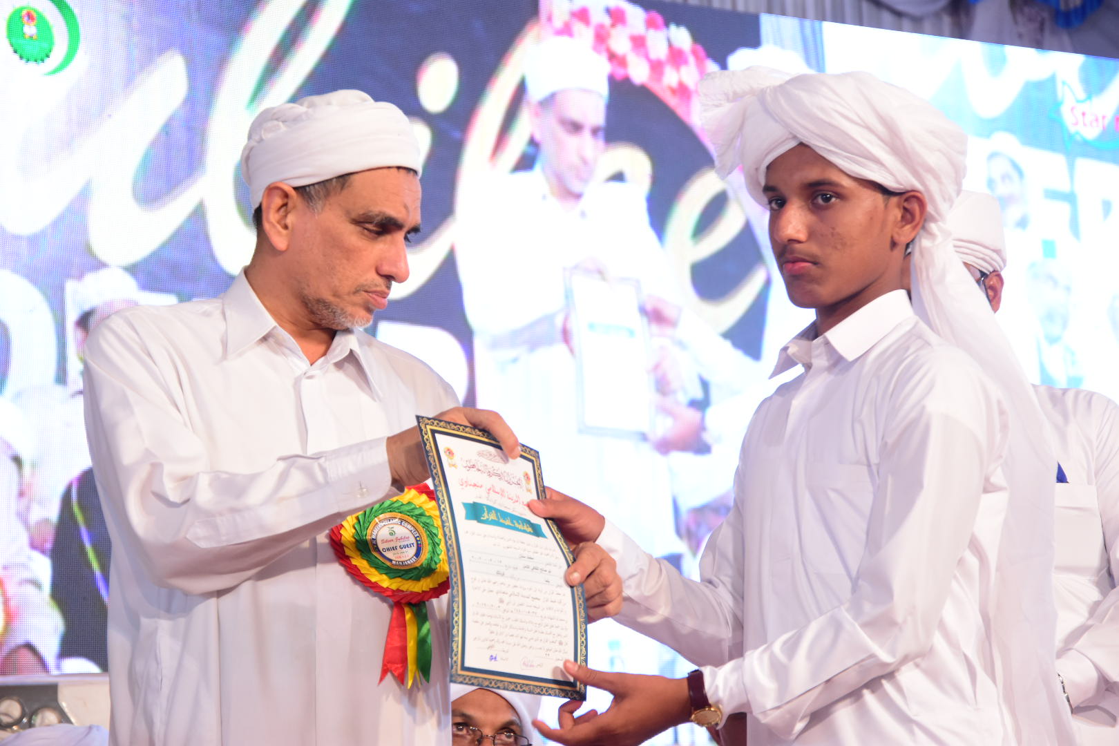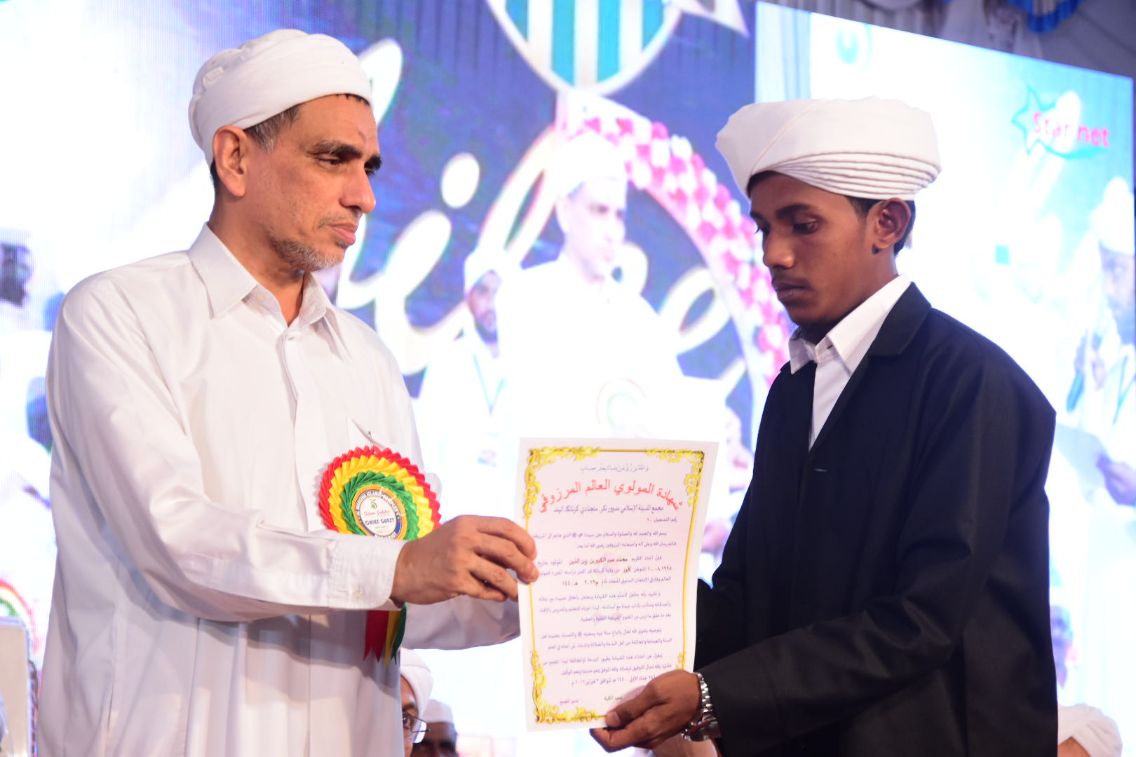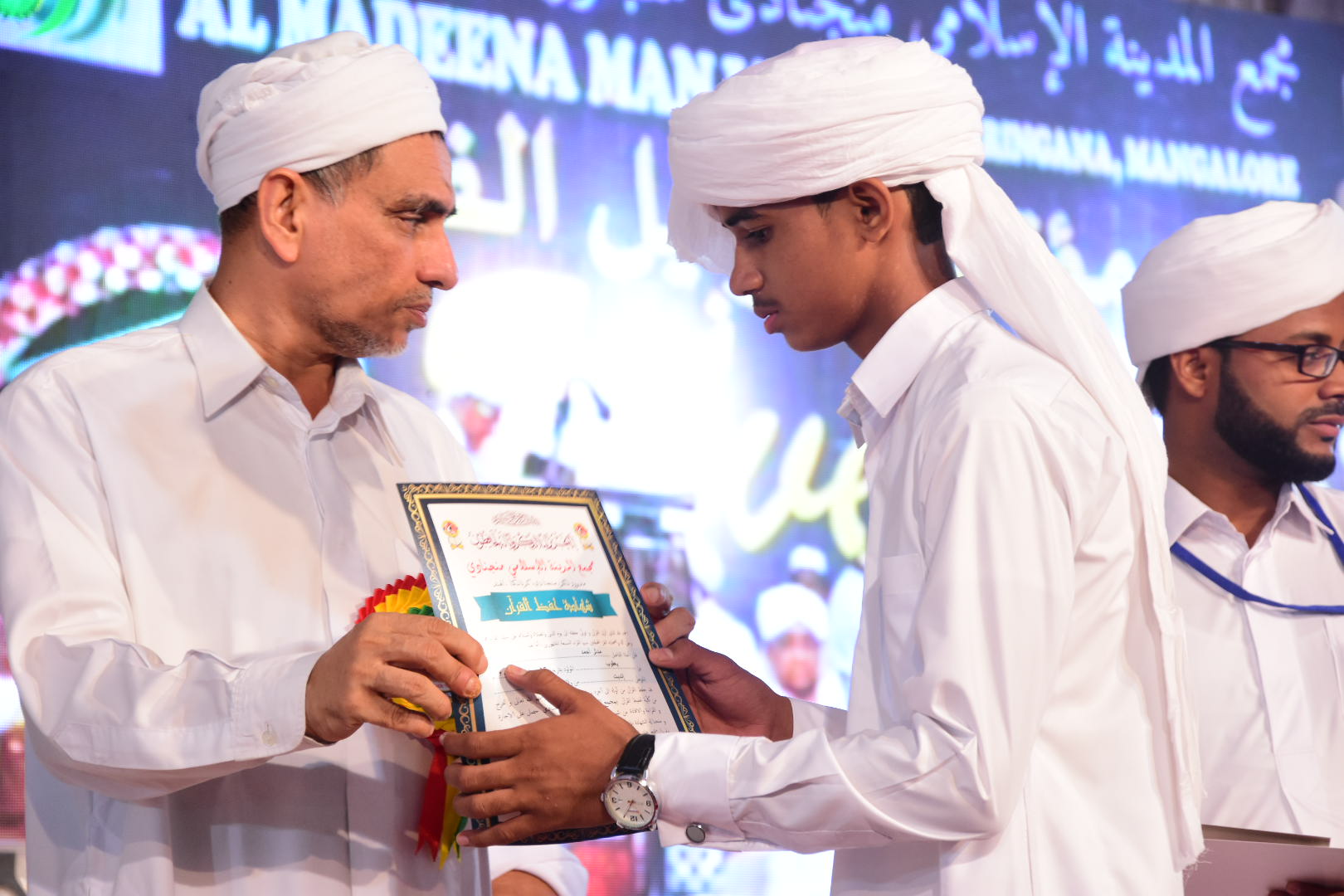 ಸನದುದಾನ: ಅಲ್ ಮದೀನಾ ದಅ್ವಾ ಕಾಲೇಜಿನಲ್ಲಿ ‘ಮರ್ಝೂಖಿ’ ಪದವಿ ಪಡೆದ 13 ವಿದ್ಯಾರ್ಥಿಗಳಿಗೆ ಸಮಾರೋಪ ಸಮ್ಮೇಳನದ ಅಧ್ಯಕ್ಷತೆ ವಹಿಸಿದ್ದ ಖುರ್ರತುಸ್ಸಾದಾತ್ ಸೈಯದ್ ಫಝಲ್ ಕೋಯಮ್ಮ ತಂಙಳ್ ಕೂರತ್ ಸನದು ಪ್ರದಾನಗೈದರು. ಸೈಯದ್ ಅಲಿ ಬಾಫಕಿ ತಂಙಳ್ ದುಆಗೈದರು. ಸಮಸ್ತ ಕೇರಳ ಜಂಇಯ್ಯತುಲ್ ಉಲಮಾದ ಅಧ್ಯಕ್ಷ ಶೈಖುನಾ ಇ. ಸುಲೈಮಾನ್ ಉಸ್ತಾದ್ ಸಮಾರೋಪ ಸಮಾರಂಭ ಉದ್ಘಾಟಿಸಿದರು. ಸಮಸ್ತ ಕೇರಳ ಜಂ ಇಯ್ಯತುಲ್ ಉಲಮಾದ ಉಪಾಧ್ಯಕ್ಷ ಶೈಖುನಾ ಅಲಿಕುಂಞಿ ಉಸ್ತಾದ್ ಶಿರಿಯಾ ಹಿಫ್ಳ್ ಸನದು ಪ್ರದಾನಗೈದರು. ಜಂಇಯ್ಯತುಲ್ ಉಲಮಾ ಕರ್ನಾಟಕದ ಅಧ್ಯಕ್ಷ ಶೈಖುನಾ ಇಬ್ರಾಹೀಂ ಮುಸ್ಲಿಯಾರ್ ಬೇಕಲ ಸನದುದಾನ ಭಾಷಣೈದರು.
