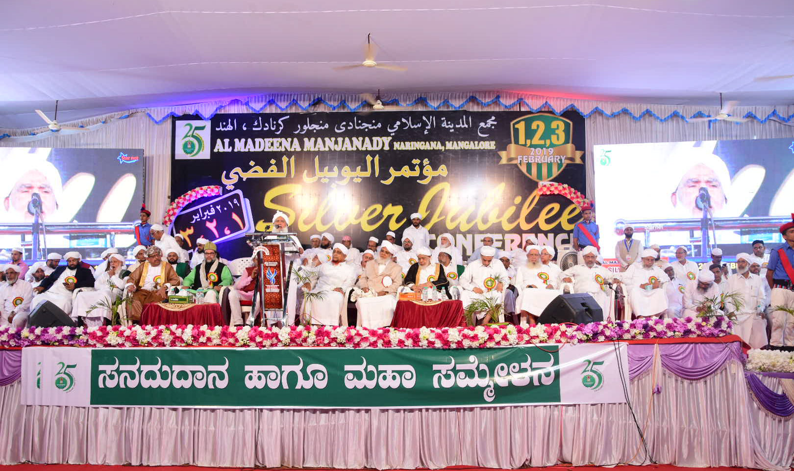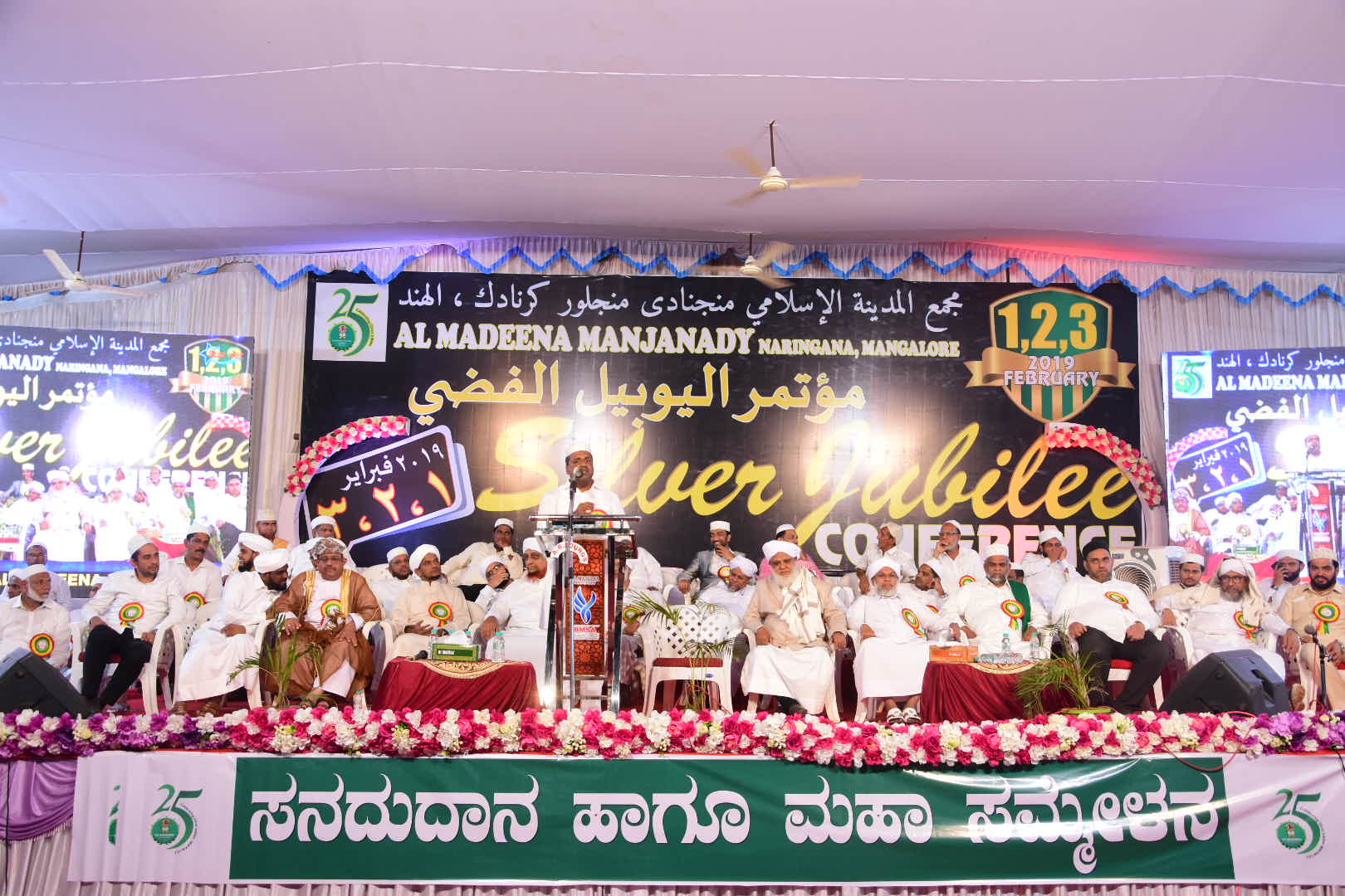 ಮಂಗಳೂರು, ಫೆ.3: ಮಂಜನಾಡಿಯ ಅಲ್ ಮದೀನಾ ಇಸ್ಲಾಮಿಕ್ ಕಾಂಪ್ಲೆಕ್ಸ್ನ ಬೆಳ್ಳಿ ಹಬ್ಬದ ಪ್ರಯುಕ್ತ ಶುಕ್ರವಾರ ಆರಂಭಗೊಂಡಿದ್ದ ಮಹಾ ಸಮ್ಮೇಳನ ರವಿವಾರ ಸಮಾಪ್ತಿಗೊಂಡಿತು. ದೇಶ-ವಿದೇಶಗಳ ಧಾರ್ಮಿಕ, ಸಾಮಾಜಿಕ, ರಾಜಕೀಯ ನಾಯಕರು ಪಾಲ್ಗೊಂಡಿದ್ದ ಈ ಕಾರ್ಯಕ್ರಮಕ್ಕೆ ಸಾವಿರಾರು ಮಂದಿಯೂ ಸಾಕ್ಷಿಯಾದರು.