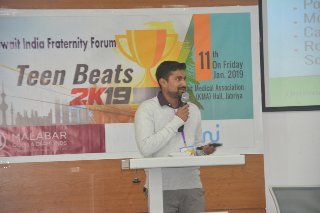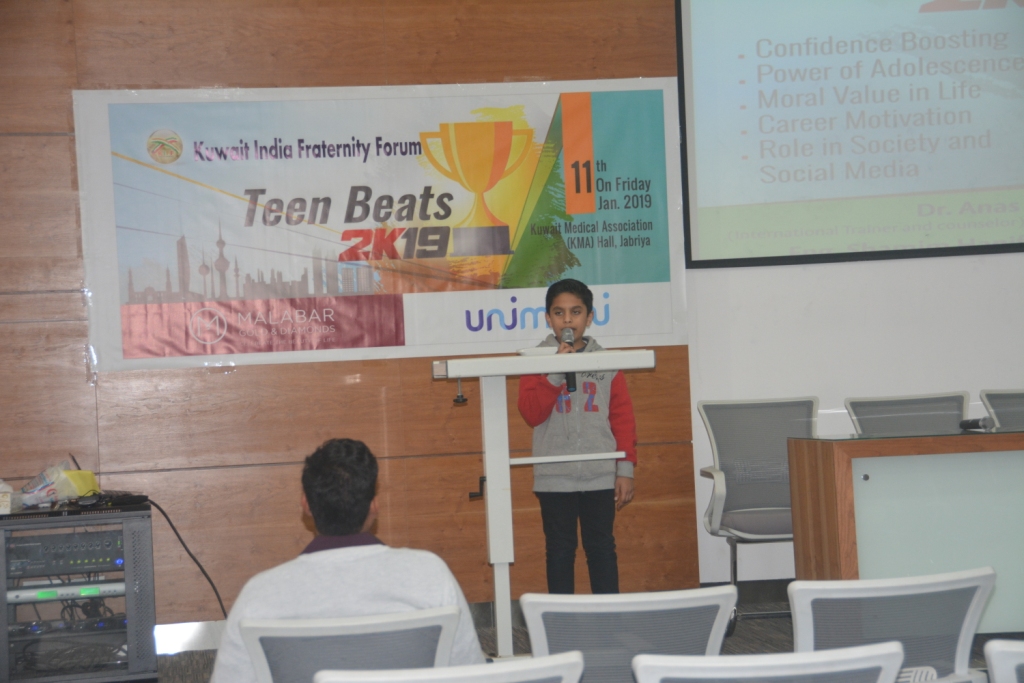 ಕುವೈತ್ , ಜ.16: ವಿದ್ಯಾರ್ಥಿಗಳಿಗಾಗಿ ಕುವೈತ್ ಇಂಡಿಯಾ ಫ್ರೆಟರ್ನಿಟಿ ಫೋರಮ್ (ಕೆಐಎಫ್ಎಫ್) ಟೀನ್ ಬೀಟ್ಸ್ 2019 ಹೆಸರಲ್ಲಿ ಒಂದು ದಿನದ ಶಿಬಿರವನ್ನು ಆಯೋಜಿಸಿತ್ತು.
