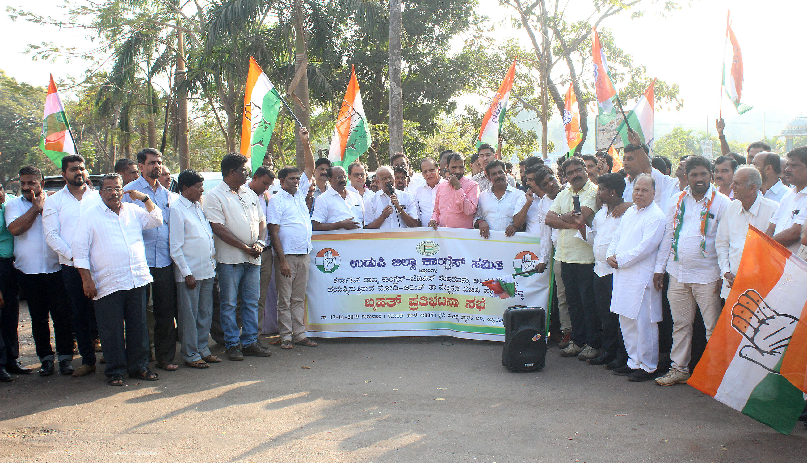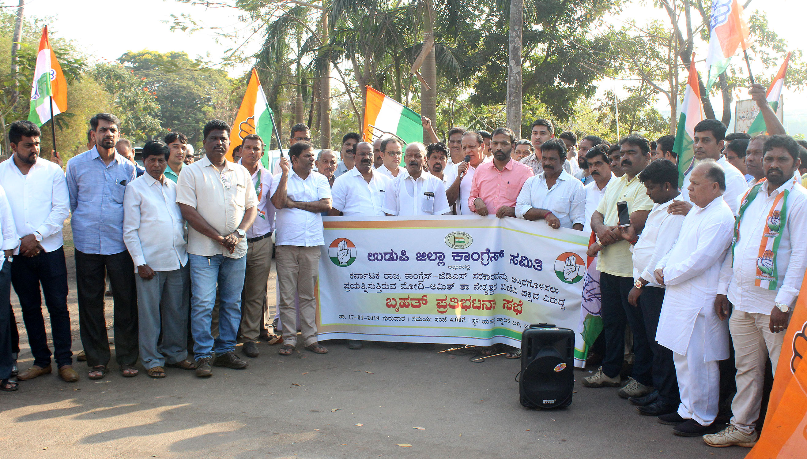 ಕಾಂಗ್ರೆಸ್- ಜೆಡಿಎಸ್ ಸರಕಾರವನ್ನು ಅಸ್ಥಿರಗೊಳಿಸಲು ಪ್ರಯತ್ನಿಸುತ್ತಿರುವ ನರೇಂದ್ರ ಮೋದಿ ಹಾಗೂ ಅಮಿತ್ ಶಾ ನೇತೃತ್ವದ ಬಿಜೆಪಿ ಪಕ್ಷದ ವಿರುದ್ಧ ಉಡುಪಿ ಜಿಲ್ಲಾ ಕಾಂಗ್ರೆಸ್ ವತಿಯಿಂದ ಅಜ್ಜರಕಾಡು ಹುತಾತ್ಮ ಸ್ಮಾರಕದ ಬಳಿ ಗುರುವಾರ ಹಮ್ಮಿಕೊಳ್ಳಲಾದ ಧರಣಿಯನ್ನುದ್ದೇಶಿಸಿ ಅವರು ಮಾತನಾಡುತಿದ್ದರು.