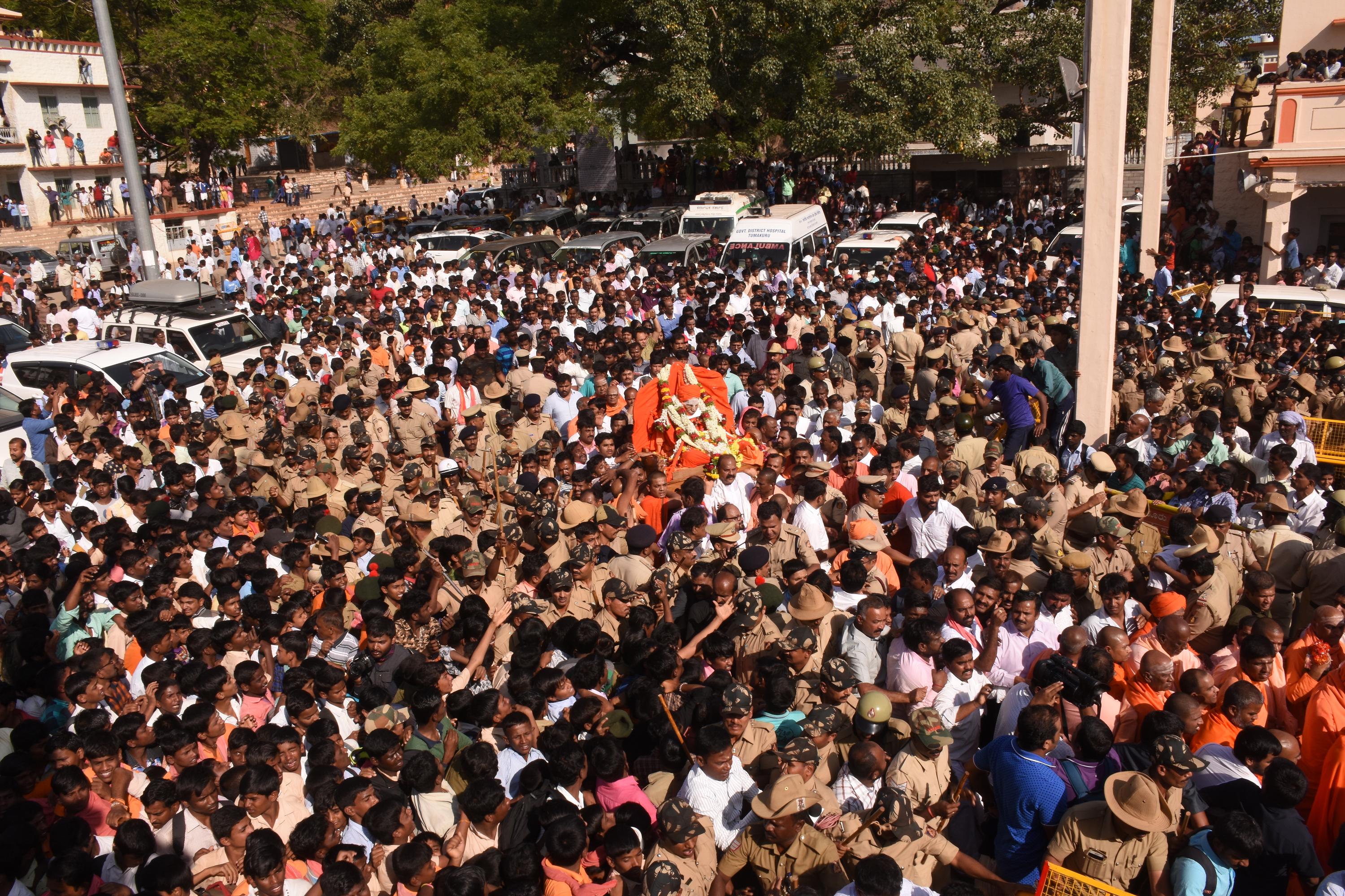 ಪರ್ಯಾಯ ಮಾರ್ಗ: ಐಜಿ ದಯಾನಂದ್ ಮಾತನಾಡಿ, ಉತ್ತರ ಕರ್ನಾಟಕ, ಹೈದ್ರಾಬಾದ್ ಕರ್ನಾಟಕ ಸೇರಿದಂತೆ ರಾಜ್ಯದ ವಿವಿಧ ಜಿಲ್ಲೆಗಳಿಂದ ಶ್ರೀಗಳ ಅಂತಿಮ ದರ್ಶನಕ್ಕೆ ಬರುವ ಲಕ್ಷಾಂತರ ಭಕ್ತರಿಗೆ ಅನುಕೂಲವಾಗುವಂತೆ ಎಲ್ಲಾ ರೀತಿಯ ಮುಂಜಾಗ್ರತಾ ಕ್ರಮಗಳನ್ನು ತೆಗೆದುಕೊಳ್ಳಲಾಗಿದೆ. ಮಠಕ್ಕೆ ಆಗಮಿಸಲು ರಾಷ್ಟ್ರೀಯ ಹೆದ್ದಾರಿ-4 ಒಂದೇ ಸಂಚಾರಿ ಮಾರ್ಗವಿದ್ದು, ಸಂಚಾರವನ್ನು ಸುಗಮವಾಗಿಸಲು ರಸ್ತೆ ಮಾರ್ಗವನ್ನು ಬದಲಾಯಿಸಲಾಗಿದೆ. ಪೂನಾ, ಶಿರಾ ಮಾರ್ಗದ ಕಡೆ ಹೋಗುವ ವಾಹನಗಳನ್ನು ಡಾಬಸ್ಪೇಟೆ ಜಂಕ್ಷನ್ನಿಂದ ಹಾಗೂ ಶಿವಮೊಗ್ಗ ಕಡೆ ಹೋಗುವ ವಾಹನಗಳಿಗೆ ನೆಲಮಂಗಲ ಜಂಕ್ಷನ್ನಿಂದ ಡೈವರ್ಟ್ ಮಾಡಲಾಗಿದೆ. ರಾಷ್ಟ್ರೀಯ ಹೆದ್ದಾರಿ-4ನ್ನು ಕೇಂದ್ರ ಹಾಗೂ ರಾಜ್ಯ ಸರಕಾರದ ಮಂತ್ರಿಗಳು, ವಿವಿಧ ಗಣ್ಯರು ಸಂಚರಿಸಲು ಮಾತ್ರ ಅವಕಾಶ ಕಲ್ಪಿಸಲಾಗಿದೆ. ಉಳಿದಂತೆ ಖಾಸಗಿ, ಇತರೆ ವಾಹನಗಳಿಗೆ ರಾಷ್ಟ್ರೀಯ ಹೆದ್ದಾರಿ-4ನ್ನು ನಿರ್ಬಂಧಿಸಲಾಗಿದ್ದು, ಸಾರ್ವಜನಿಕರು ಸಹಕರಿಸಬೇಕಾಗಿ ಮನವಿ ಮಾಡಿದರು.