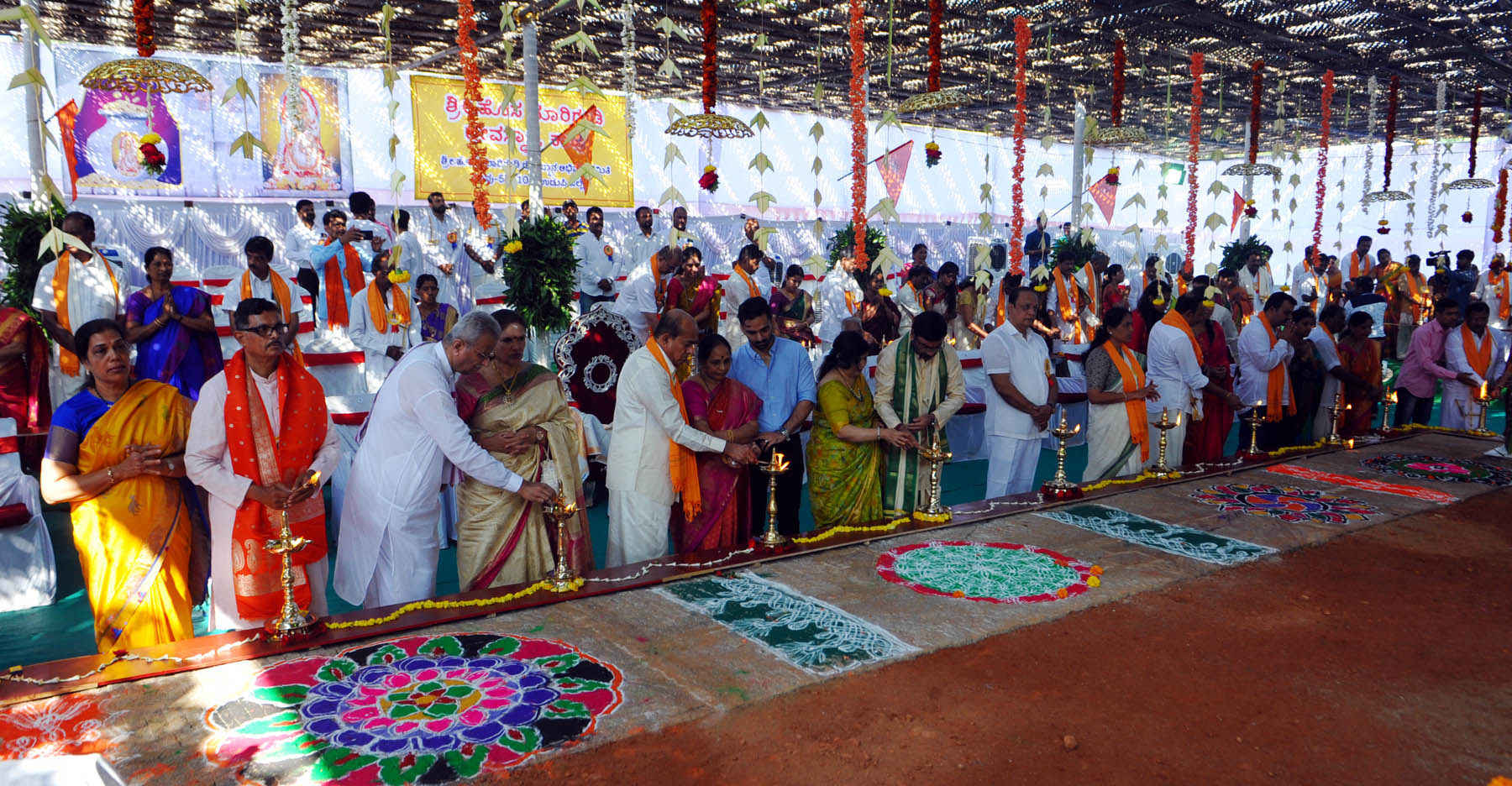 99 ಮಂದಿ ಏಕಕಾಲದಲ್ಲಿ ದ್ವೀಪ ಪ್ರಜ್ವಲನೆ ನಡೆಸುವುದರ ಮೂಲಕ ಕಾರ್ಯಕ್ರಮಕ್ಕೆ ಚಾಲನೆ ನೀಡಲಾಯಿತು. ಕಾಪು ಹೊಸ ಮಾರಿಗುಡಿಯ ಪ್ರಧಾನ ತಂತ್ರಿಗಳಾದ ವಿದ್ವಾನ್ ರಾಘವೇಂದ್ರ ತಂತ್ರಿ ಕೊರಂಗ್ರಪಾಡಿ, ಕುಮಾರಗುರು ತಂತ್ರಿ ಕೊರಂಗ್ರಪಾಡಿ, ಕಾಪು ಸೀಮೆಯ ತಂತ್ರಿ ವೇ.ಮೂ. ಶ್ರೀಶ ತಂತ್ರಿ ಕಲ್ಯ, ಮಾರಿಗುಡಿಯ ಪ್ರಧಾನ ಅರ್ಚಕ ಶ್ರೀನಿವಾಸ ತಂತ್ರಿ ಕಲ್ಯ ಅªರು ನಿಧಿ ಕುಂಭ ಸ್ಥಾಪನಾ ಪೂರ್ವಕ ಧಾರ್ಮಿಕ ವಿಧಾನಗಳನ್ನು ಪೂರೈಸಿದರು. ಇದೇ ಸಂದರ್ಭದಲ್ಲಿ ಉಚ್ಚಂಗಿ ಗುಡಿ ನಿರ್ಮಾಣಕ್ಕೆ ಪೇಜಾವರ ಸ್ವಾಮೀಜಿ ನವರತ್ನ ಸಮರ್ಪಿಸಿದರು.