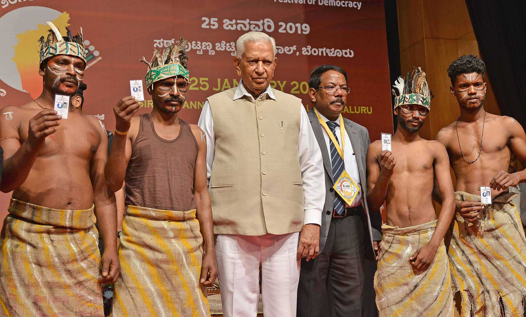 ಬೆಂಗಳೂರು, ಜ.25: ಮತಯಂತ್ರಗಳಲ್ಲಿ ವಿವಿ ಪ್ಯಾಟ್ ಅಳವಡಿಸಿರುವುದರಿಂದ ಮತದಾರರಿಗೆ ಚುನಾವಣಾ ಪ್ರಕ್ರಿಯೆಯಲ್ಲಿ ವಿಶ್ವಾಸ ಮೂಡುವಂತೆ ಮಾಡಿದೆ ಎಂದು ರಾಜ್ಯಪಾಲ ವಜುಭಾಯಿ ವಾಲಾ ತಿಳಿಸಿದರು.