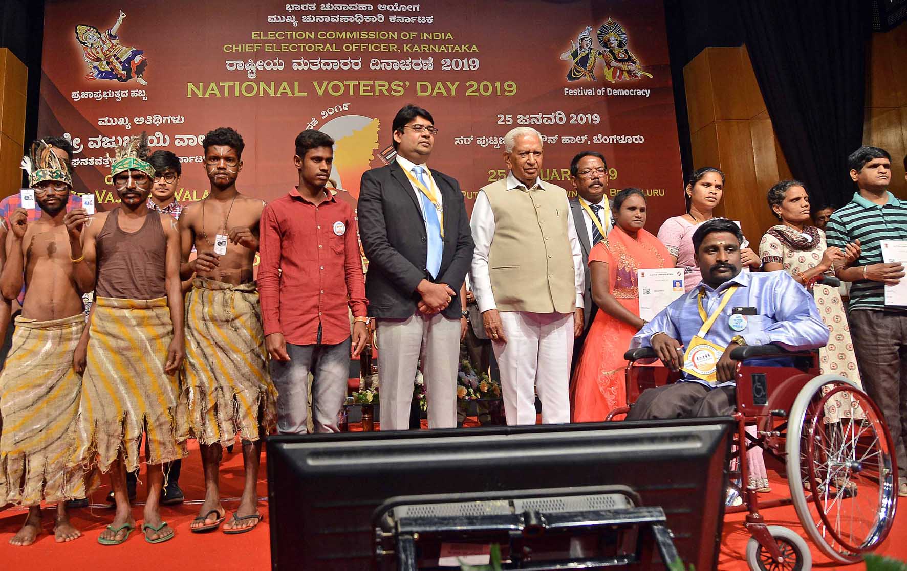 ರಾಜ್ಯಮಟ್ಟದ ಕ್ವಿಜ್ ಸ್ಪರ್ಧೆಯಲ್ಲಿ ವಿಜೇತರಾದ ಶಾಲಾ ಮಕ್ಕಳಿಗೆ ಹಾಗೂ ಕಳೆದ ವಿಧಾನಸಭಾ ಚುನಾವಣೆಯಲ್ಲಿ ದಕ್ಷತೆಯಿಂದ ಸೇವೆ ಸಲ್ಲಿಸಿದ ಚುನಾವಣಾ ಅಧಿಕಾರಿಗಳಿಗೆ ಬಹುಮಾನ ನೀಡಲಾಯಿತು. ಹಾಗೂ ಯುವ ಮತದಾರರು, ವಿಕಲಚೇತನ ಹಾಗೂ ಆದಿವಾಸಿ ಮತದಾರರಿಗೆ ಗುರುತಿನ ಚೀಟಿ ವಿತರಿಸಲಾಯಿತು. ಈ ವೇಳೆ ಬಿಬಿಎಂಪಿ ಆಯುಕ್ತ ಮಂಜುನಾಥ ಪ್ರಸಾದ್ ಉಪಸ್ಥಿತರಿದ್ದರು.