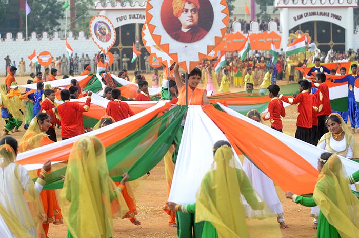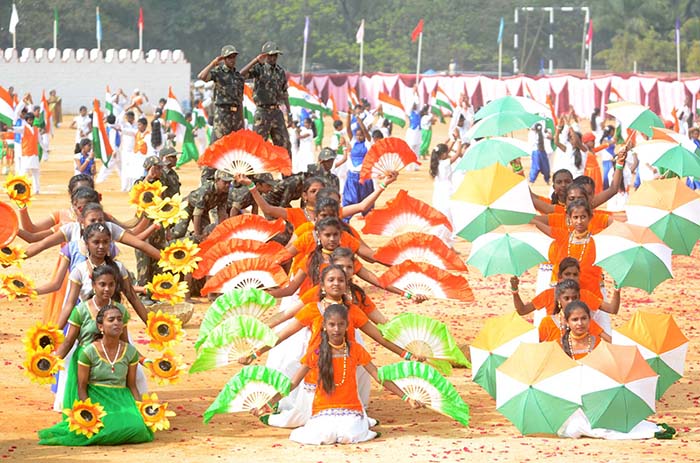 ಬೆಂಗಳೂರು, ಜ.26: ನಗರದ ಮಾಣಿಕ್ ಷಾ ಪೆರೇಡ್ ಮೈದಾನದಲ್ಲಿ 70ನೆ ಗಣರಾಜ್ಯೋತ್ಸವದ ದಿನಾಚರಣೆ ಅಂಗವಾಗಿ ಆಯೋಜಿಸಿದ್ದ ಸಾಂಸ್ಕೃತಿಕ ಕಾರ್ಯಕ್ರಮಗಳಲ್ಲಿ ಸಾವಿರಾರು ವಿದ್ಯಾರ್ಥಿಗಳು ನೃತ್ಯಗಳ ಮೂಲಕ ಸಮಾನತೆ, ಸಹೋದರತೆ, ಭ್ರಾತೃತ್ವದ ಸಂದೇಶ ಸಾರಿದರು.
