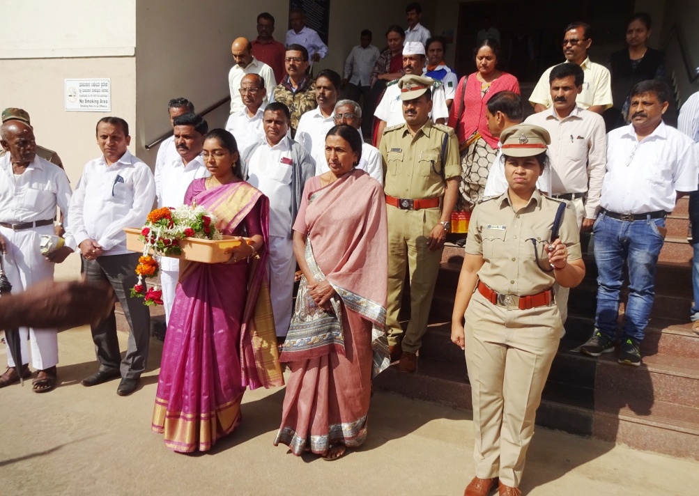 ನಗರದ ಜಿಲ್ಲಾಡಳಿತ ಭವನದಲ್ಲಿನ ಜಿಲ್ಲಾ ಖಜಾನೆಯಲ್ಲಿರಿಸಲಾದ ಮಹಾತ್ಮ ಗಾಂಧೀಜಿಯವರ ಚಿತಾಭಸ್ಮವನ್ನು ಹೊರತೆಗೆದು ಪುಷ್ಪಮಾಲೆಗಳಿಂದ ಶೃಂಗರಿಸಿ ಗೌರವ ಸಮರ್ಪಣೆ ಮಾಡಲಾಯಿತು.