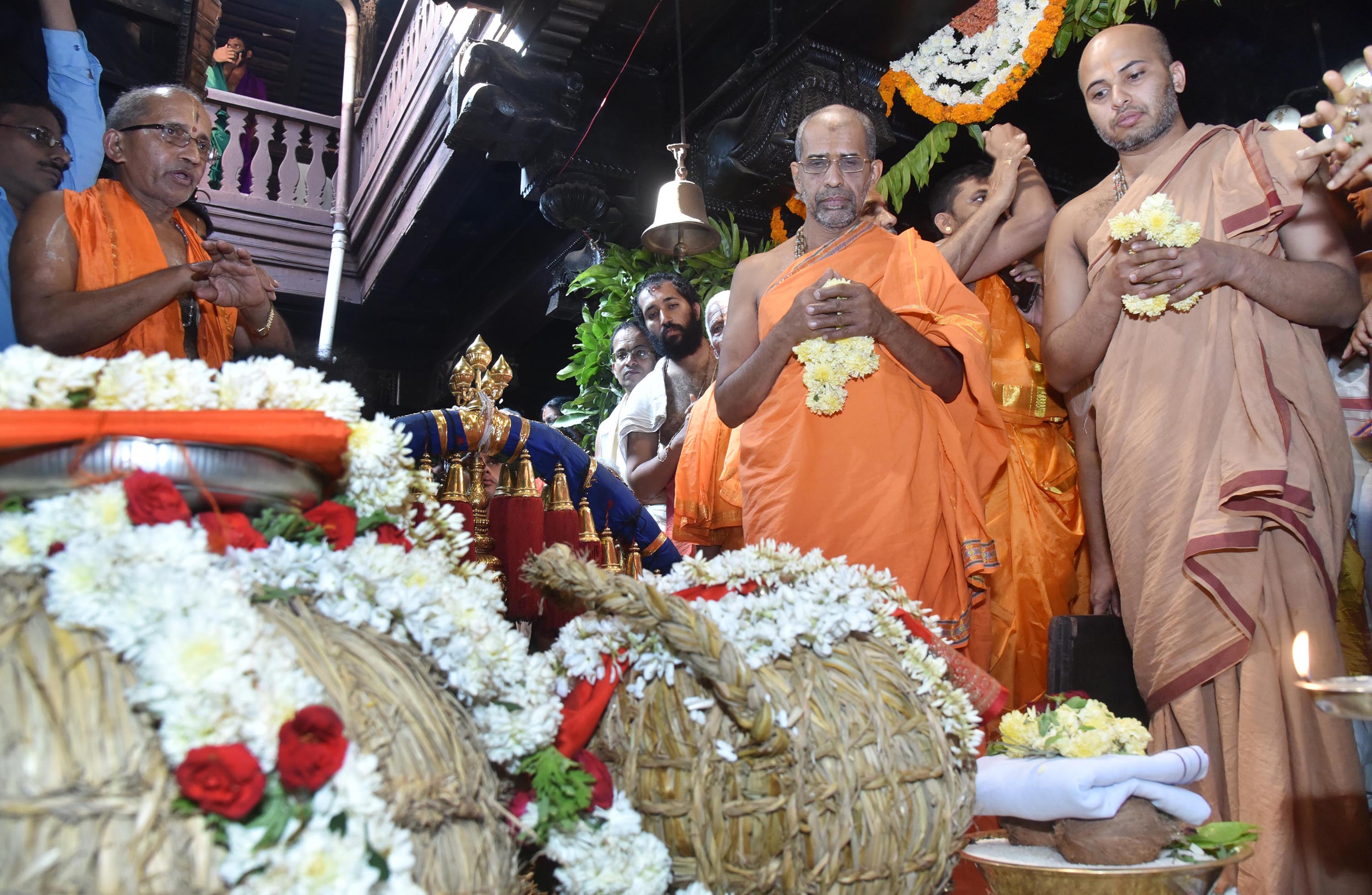 ಅದಮಾರು ಮಠಾಧೀಶರಾದ ಶ್ರೀವಿಶ್ವಪ್ರಿಯ ತೀರ್ಥ ಸ್ವಾಮೀಜಿ ಹಾಗೂ ಕಿರಿಯ ಯತಿಗಳಾದ ಶ್ರೀಈಶಪ್ರಿಯ ತೀರ್ಥ ಸ್ವಾಮೀಜಿ ಅವರ ಉಪಸ್ಥಿತಿ ಯಲ್ಲಿ ಅಕ್ಕಿ ಮುಹೂರ್ತದ ಸಾಂಪ್ರದಾಯಿಕ ವಿಧಿವಿಧಾನಗಳು ನಡೆದವು. ಪುತ್ತಿಗೆ ಮಠದ ಶ್ರೀಸುಗುಣೇಂದ್ರ ತೀರ್ಥ ಶ್ರೀಪಾದರನ್ನು (ಶೀರೂರು ಮಠಕ್ಕಿನ್ನೂ ಉತ್ತರಾಧಿಕಾರಿ ನೇಮಕಗೊಂಡಿಲ್ಲ) ಹೊರತು ಪಡಿಸಿ ಉಳಿದೆಲ್ಲಾ ಆರು ಮಠಗಳ ಶ್ರೀಪಾದರು ಹಾಗೂ ಕಿರಿಯ ಯತಿಗಳು ಇಂದಿನ ಅಕ್ಕಿ ಮುಹೂರ್ತದಲ್ಲಿ ಪಾಲ್ಗೊಂಡರು.