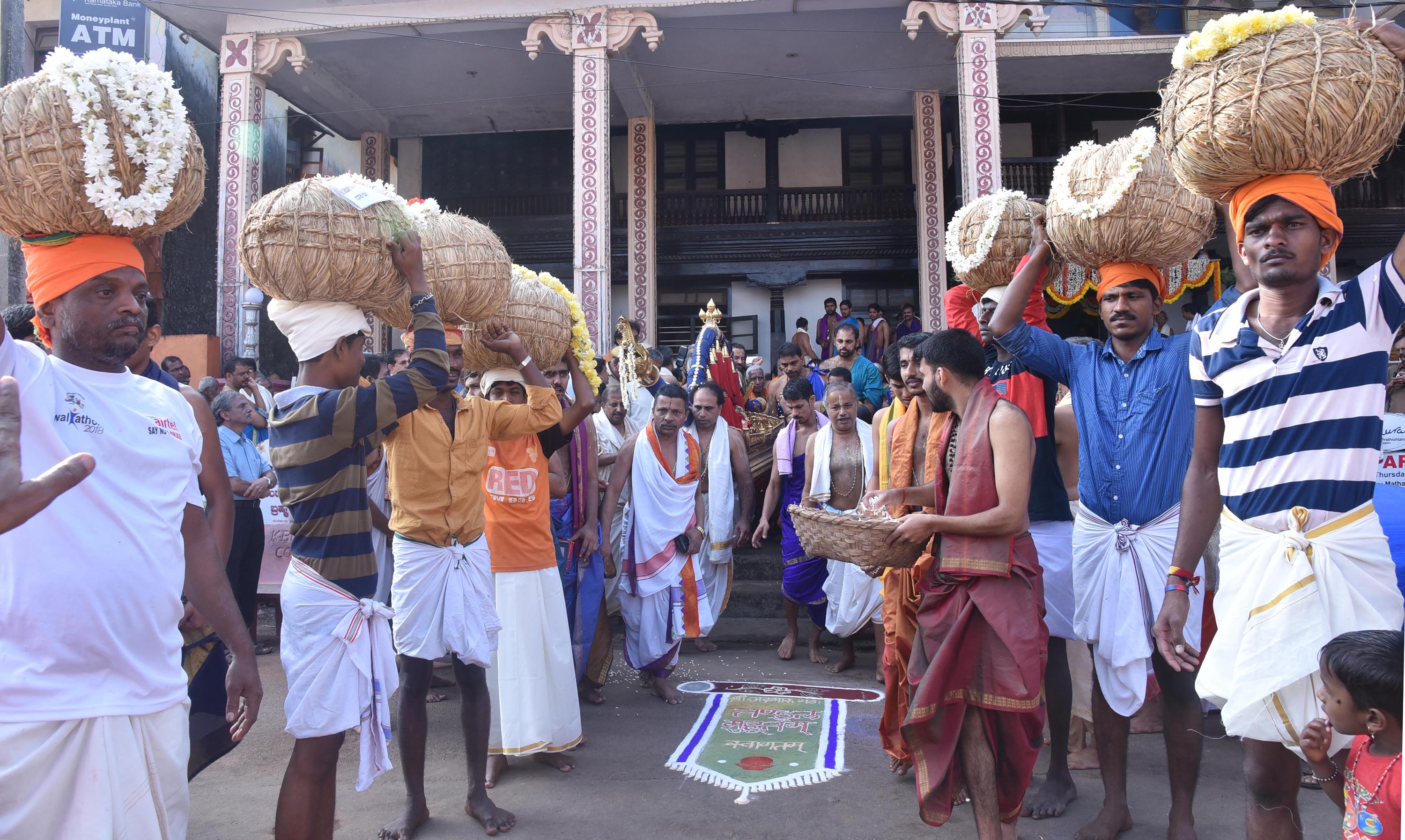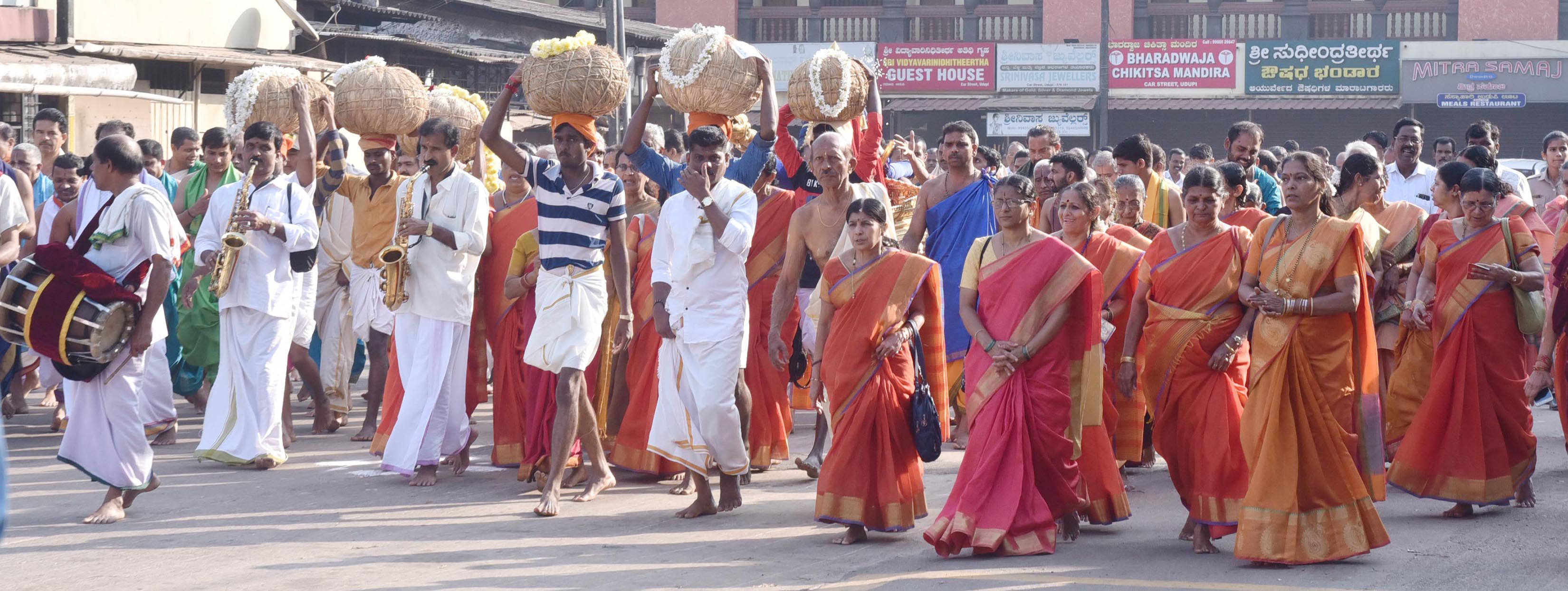 ಬಳಿಕ ಅದಮಾರು ಮಠದಿಂದ ಸಾಲಂಕೃತವಾದ ಅಕ್ಕಿ ಮುಡಿಗಳನ್ನು ಪಲ್ಲಕ್ಕಿಯಲ್ಲಿರಿಸಿ ತಲೆಹೊರೆಯ ಮೂಲಕ ಬಿರುದು ಬಾವಲಿಗಳೊಂದಿಗೆ ರಥಬೀದಿಗೆ ಪ್ರದಕ್ಷಿಣೆ ಬಂದು ಅದಮಾರು ಮಠದಲ್ಲಿ ಪಟ್ಟದ ದೇವರ ಎದುರು ಅಕ್ಕಿಮುಡಿಯನ್ನಿರಿಸಿ ಆರತಿ ಬೆಳಗುವ ಮೂಲ ಕಾರ್ಯಕ್ರಮ ಸಂಪನ್ನಗೊಂಡಿತು.