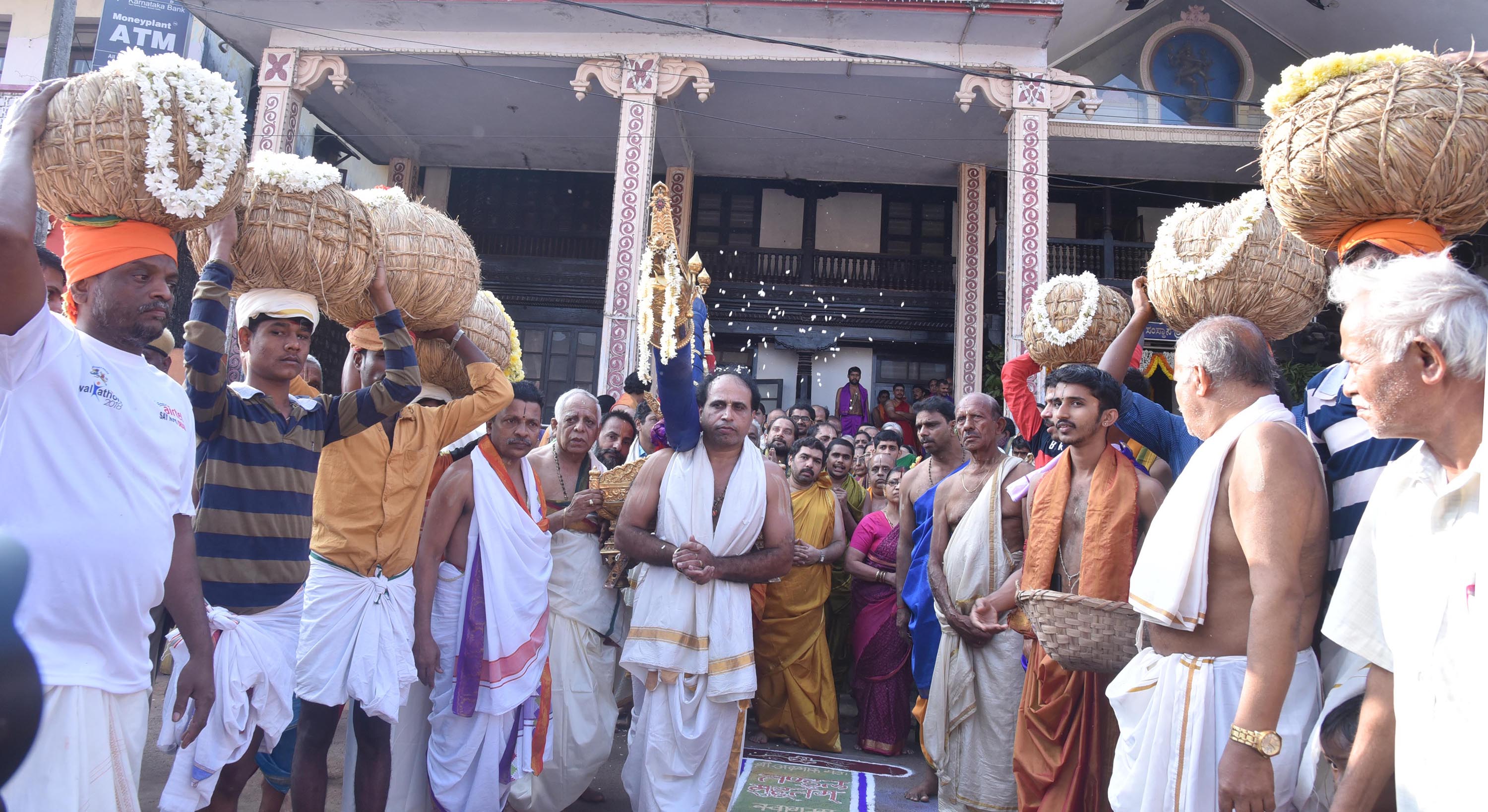 ಅನಂತರ ಮಠದ ದಿವಾನರ ನೇತೃತ್ವದಲ್ಲಿ ಊರಿನ ಗಣ್ಯರು, ಮಠದ ಅಭಿಮಾನಿಗಳು ಸಕಲ ಬಿರುದು ಬಾವಲಿಗಳೊಂದಿಗೆ ಮೆರವಣಿಗೆಯಲ್ಲಿ ತೆರಳಿ ಚಂದ್ರವೌಳೀಶ್ವರ, ಶ್ರೀಅನಂತೇಶ್ವರ ದೇವರಿಗೆ ಪಾರ್ಥಿಸಿ, ಬಳಿಕ ಶ್ರೀಕೃಷ್ಣ ಮಠದಲ್ಲಿ ಶ್ರೀಕೃಷ್ಣ ಮತ್ತು ಮುಖ್ಯಪ್ರಾಣರಿಗೆ, ಸರ್ವಜ್ಞ ಪೀಠದಲ್ಲಿರುವ ಶ್ರೀಮಧ್ವಾಚಾರ್ಯರಿಗೆ ಪಾರ್ಥಿಸಲಾಯಿತು.
