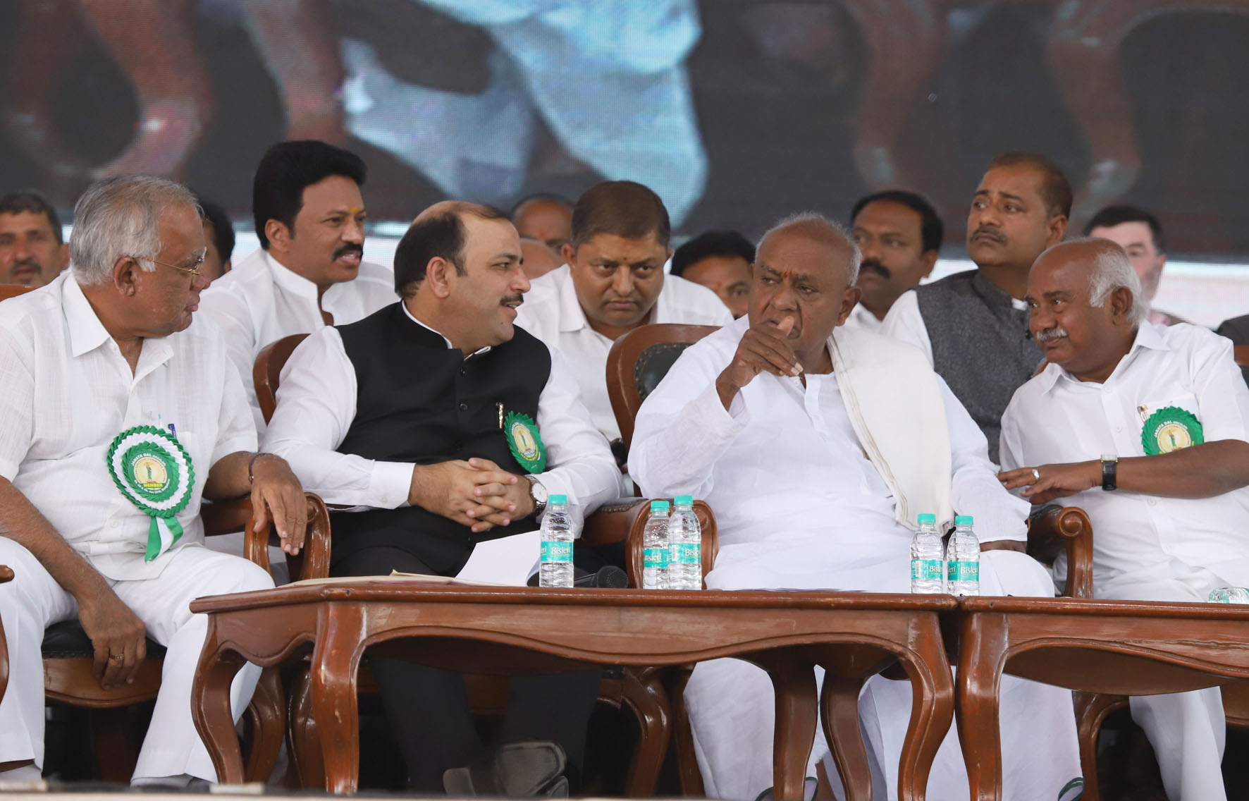 ರಾಷ್ಟ್ರದಲ್ಲಿ ಹಲವು ಸಮ್ಮಿಶ್ರ ಸರಕಾರಗಳು ಬಂದಿವೆ. ನಾನು ಕಾಂಗ್ರೆಸ್ ಪಕ್ಷದ ಬೆಂಬಲದಿಂದ ಪ್ರಧಾನಿ ಆಗಿದ್ದೆ. ರಾಜ್ಯದಲ್ಲಿ ಧರ್ಮಸಿಂಗ್ ಜೊತೆ ಮೈತ್ರಿ ಮಾಡಿಕೊಂಡಿದ್ದಾಗ ಸರಕಾರದಲ್ಲಿ ಷರತ್ತುಗಳು ಇರಲಿಲ್ಲ. ಅವರ ಸರಕಾರ ಬೀಳೋಕೆ ನಾನಾಗಲಿ ಕುಮಾರಸ್ವಾಮಿ ಆಗಲಿ ಕಾರಣರಲ್ಲ. ಇವತ್ತು ಅದೇ ಕಾಂಗ್ರೆಸ್ ಬೆಂಬಲದಿಂದ ಕುಮಾರಸ್ವಾಮಿ ಮುಖ್ಯಮಂತ್ರಿ ಆಗಿದ್ದಾರೆ ಎಂದು ಅವರು ಹೇಳಿದರು.