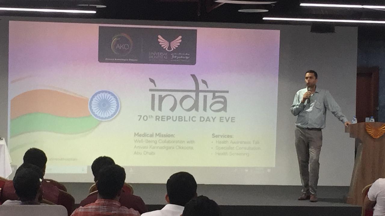 ಅಬುಧಾಬಿ, ಜ.26: ಅನಿವಾಸಿ ಕನ್ನಡಿಗರ ಒಕ್ಕೂಟ, ಅಬುಧಾಬಿ ವತಿಯಿಂದ ಯುನಿವರ್ಸಲ್ ಆಸ್ಪತ್ರೆ ಇದರ ಸಹಯೋಗದೊಂದಿಗೆ 70ನೇ ಗಣರಾಜ್ಯೋತ್ಸವದ ಅಂಗವಾಗಿ ಇತ್ತೀಚೆಗೆ ಉಚಿತ ವೈದ್ಯಕೀಯ ಶಿಬಿರವು ನಡೆಯಿತು. ಭಾರತದ ವಿವಿದ ರಾಜ್ಯಗಳಿಂದ ಭಾಗವಹಿಸಿದ ಅನಿವಾಸಿಗರು ಆರೋಗ್ಯ ಮತ್ತು ಪರಿಸರದ ಪ್ರಾಮುಖ್ಯತೆಯ ಬಗ್ಗೆ ಹೆಚ್ಚಿನ ಜಾಗೃತಿಯನ್ನು ಹರಡುವ ಭಾಗವಾಗಿ ನಡೆಸಿದ ಉಚಿತ ವೈದ್ಯಕೀಯ ಶಿಬಿರ ಕಾರ್ಯಕ್ರಮದ ಪ್ರಯೋಜನವನ್ನು ಪಡೆದರು.