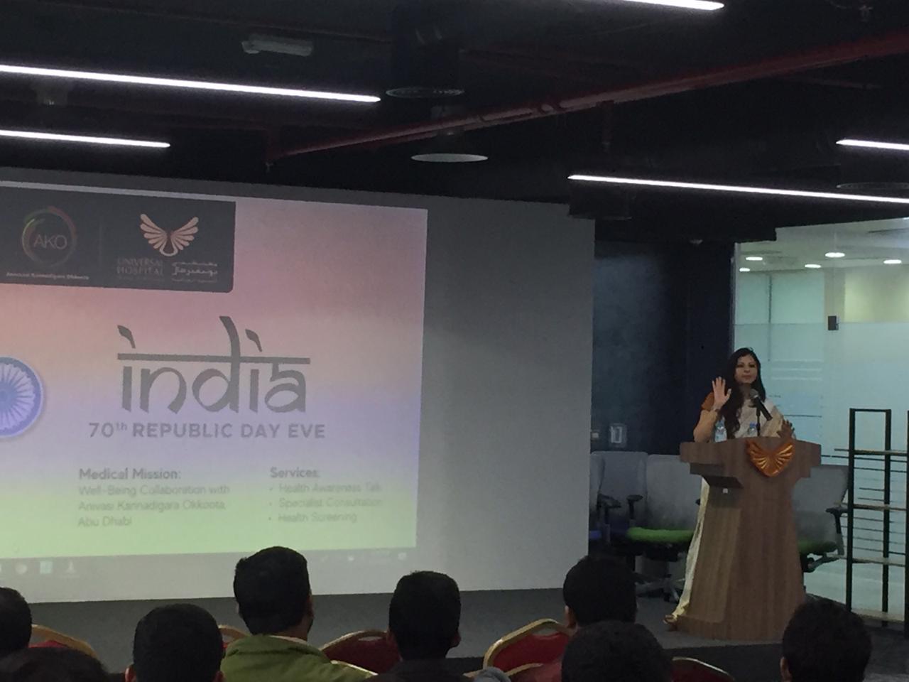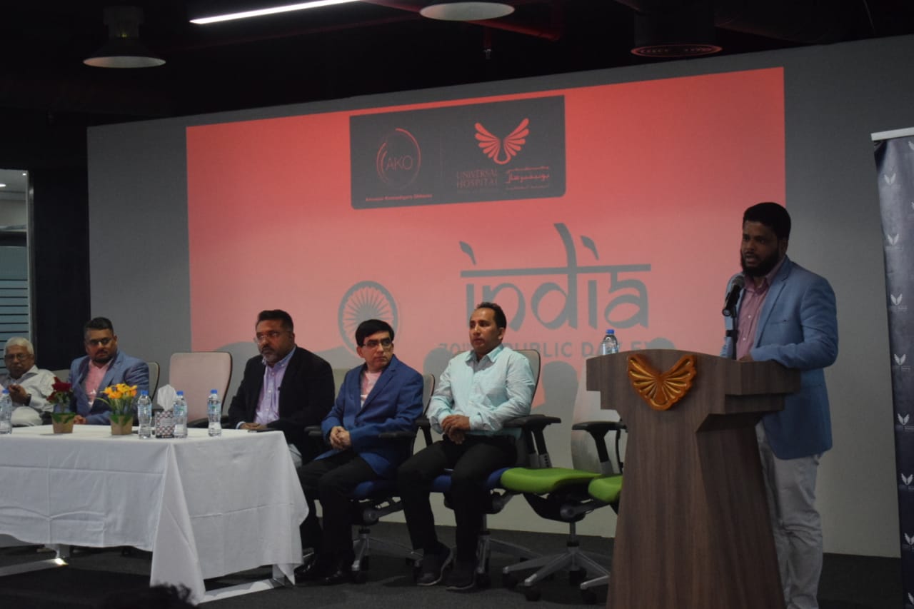 ಯುನಿವರ್ಸಲ್ ಆಸ್ಪತ್ರೆಯ ಮುಖ್ಯ ವೈದ್ಯಾಧಿಕಾರಿ ಡಾ. ಜಾರ್ಜ್ ಕೋಶಿ, ನಿರ್ದೇಶಕ ಡಾ.ಚಂದ್ರ, ನಿರ್ವಹಣಾಧಿಕಾರಿ ಡಾ. ಸುನಿಲ್ ಕುಮಾರ್ ಹಾಗೂ ಸಮೀಯುಲ್ಲಾಹ್ ಮುಹಮ್ಮದ್ ಹಬೀಬ್ CA ಅತಿಥಿಗಳಾಗಿ ಭಾಗವಹಿಸಿ ನೆರೆದ ಅನಿವಾಸಿಗಳಿಗೆ ಗಣರಾಜ್ಯೋತ್ಸವ ಶುಭ ಹಾರೈಸಿದರು.