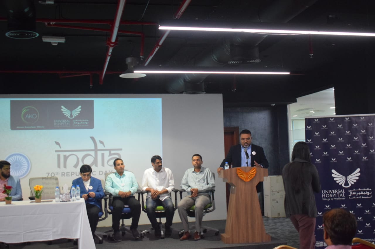 ಕಾರ್ಯಕ್ರಮವನ್ನು ಉದ್ಘಾಟಿಸಿ ಮಾತನಾಡಿದ ಅನಿವಾಸಿ ಕನ್ನಡಿಗರ ಒಕ್ಕೂಟದ ಉಪಾಧ್ಯಕ್ಷರಾದ ಜನಾಬ್ ಮುಹಮ್ಮದ್ ನಾಸಿರ್, ಭಾಗವಹಿಸಿದ ಸರ್ವ ಅನಿವಾಸಿ ಭಾರತೀಯರಿಗೂ 70ನೇ ವರ್ಷದ ಗಣರಾಜ್ಯೋತ್ಸವದ ಶುಭ ಹಾರೈಸಿದರು. ಯುನಿವರ್ಸಲ್ ಆಸ್ಪತ್ರೆಯ ಸ್ಥಾಪಕ ಮತ್ತು ವ್ಯವಸ್ಥಾಪಕ ನಿರ್ದೇಶಕರಾದ ಜನಾಬ್ ಶಬೀರ್ ನೆಲ್ಲಿಕೋಡು ರವರು ಕಾರ್ಯಕ್ರಮದ ಮುಖ್ಯ ಅತಿಥಿಯಾಗಿದ್ದರು.