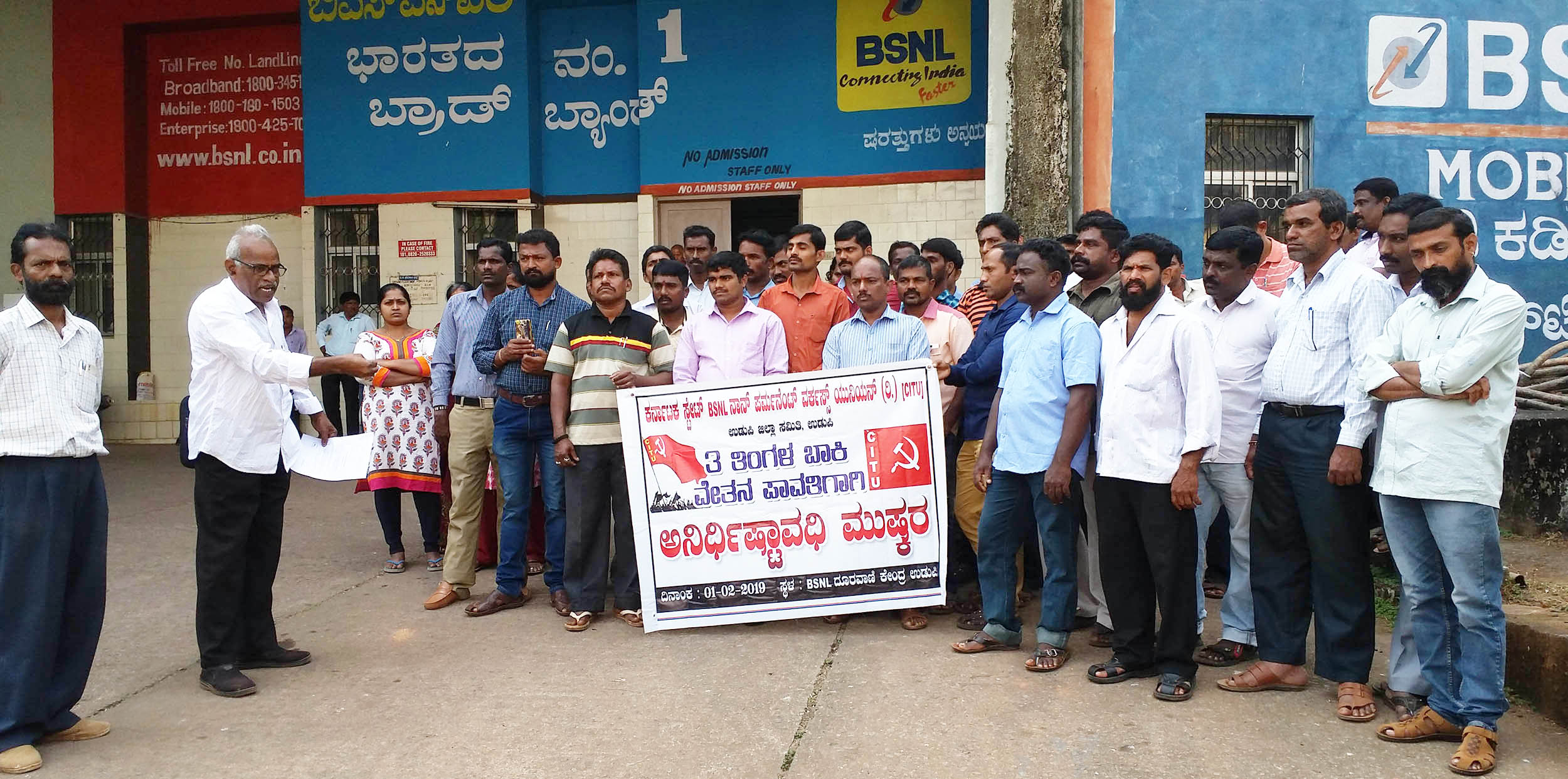 ಬಿಎಸ್ಎನ್ಎಲ್ ಗುತ್ತಿಗೆ ನೌಕರರಿಂದ ಅನಿರ್ಧಿಷ್ಠಾವಧಿ ಮುಷ್ಕರ: ಬಾಕಿ ಇರುವ ನಾಲ್ಕು ತಿಂಗಳ ವೇತನ ಪಾವತಿಗೆ ಒತ್ತಾಯ