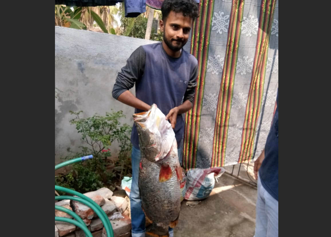 ಮಲ್ಪೆ, ಫೆ. 1: ಸೀವಾಕ್ ಸಮೀಪದ ಸಮುದ್ರದಲ್ಲಿ ಇಂದು ಬೆಳಗ್ಗೆ ಗಾಳಕ್ಕೆ ಬೃಹತ್ ಗಾತ್ರದ ಮೀನು ಸಿಕ್ಕಿರುವ ಬಗ್ಗೆ ವರದಿಯಾಗಿದೆ. ಮಲ್ಪೆಯ ಶೌಕತ್ ಎಂಬವರ ಪುತ್ರ ತನ್ವೀರ್ ಎಂಬವರ ಗಾಳಕ್ಕೆ ಕುಲೇಜ್ ಎಂಬ ಮೀನು ದೊರೆತಿದೆ. ಸುಮಾರು 4 ಅಡಿ ಉದ್ದದ ಈ ಮೀನು 16 ಕೆಜಿ ತೂಕ ಇರುವುದಾಗಿ ತನ್ವೀರ್ ತಿಳಿಸಿದ್ದಾರೆ.