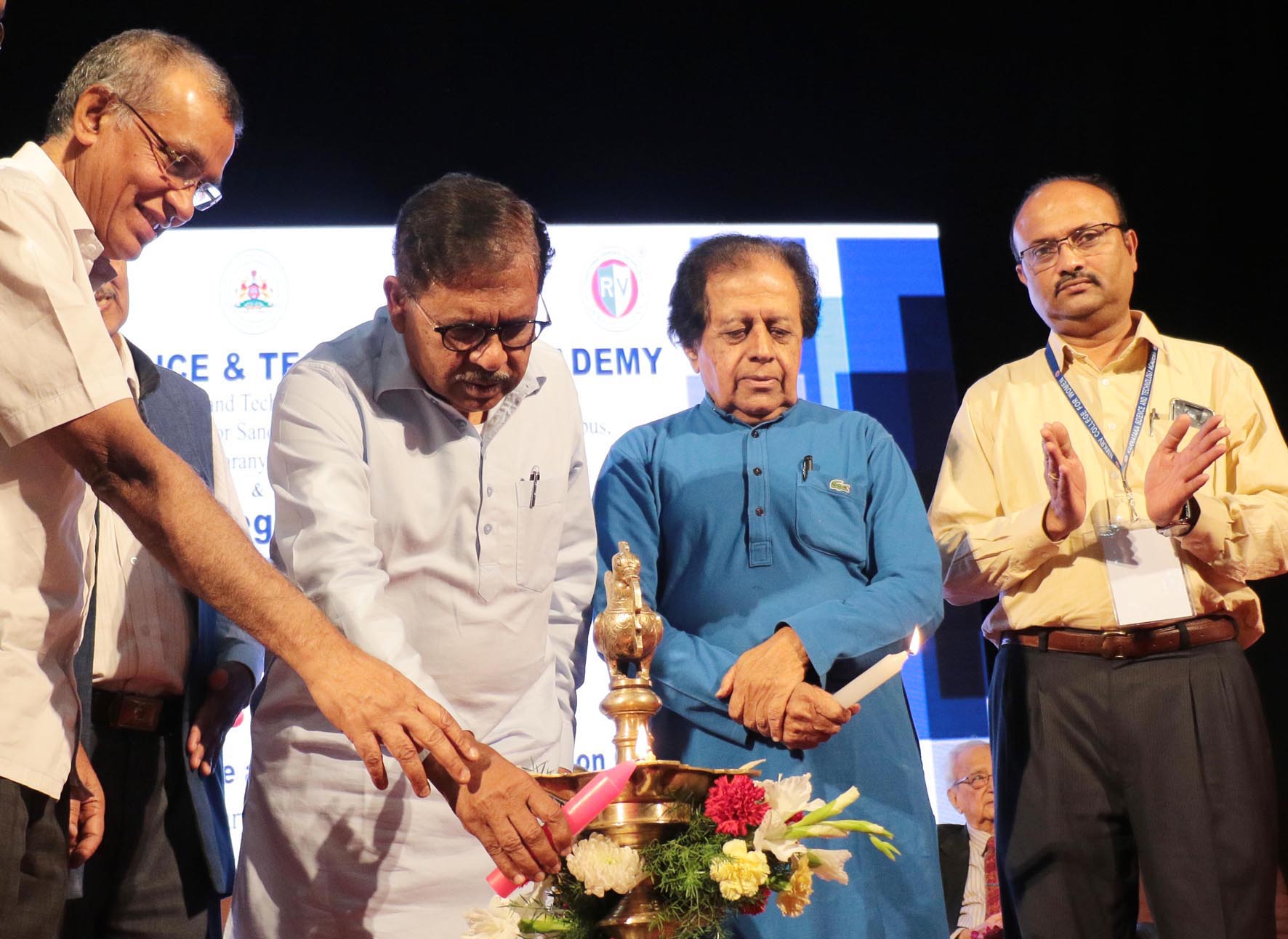 ಭಾರತಕ್ಕೆ ವಿಜ್ಞಾನದ ಅಡಿಪಾಯವಿದೆ. 21ನೆ ಶತಮಾನ ವಿಜ್ಞಾನದ ಯುಗವಾಗಿದೆ. 30 ವರ್ಷಗಳ ಹಿಂದೆ ನಮ್ಮ ದೇಶ ಆಹಾರ ಉತ್ಪಾದನೆಯಲ್ಲಿ ಬೇರೆ ದೇಶಗಳನ್ನು ಅವಲಂಬಿಸಿತ್ತು. ಆದರೆ, ಆಹಾರ ಪದಾರ್ಥಗಳ ಉತ್ಪಾದನೆಯಲ್ಲಿಂದು ಸ್ವಾವಲಂಬಿಗಳಾಗಿದ್ದೇವೆ. ಅಲ್ಲದೆ ರಫ್ತು ಮಾಡುವ ಸಾಮರ್ಥ್ಯಕ್ಕೆ ತಲುಪಿದ್ದೇವೆ ಎಂದರು. ಇಂದು ವಿಜ್ಞಾನದ ಬಗ್ಗೆ ಹೆಚ್ಚಿನ ಅರಿವು ಹಾಗೂ ಪ್ರೋತ್ಸಾಹಿಸುವ ನಿಟ್ಟಿನಲ್ಲಿ 22 ಪ್ರಾದೇಶಿಕ ಸೈನ್ಸ್ ಸೆಂಟರ್ ತೆರೆಯಲಾಗುತ್ತಿದೆ. ಜೊತೆಗೆ ಮೈಸೂರಿನಲ್ಲಿ 198 ಕೋಟಿ ರೂ.ವೆಚ್ಚದಲ್ಲಿ ಸೈನ್ಸ್ ಸಿಟಿ ತೆರೆಯಲು ಉದ್ದೇಶಿಸಲಾಗಿದೆ ಎಂದು ಹೇಳಿದರು. ಡಾ.ಬಿ.ವಿ.ಶ್ರೀಕಂಠನ್ ಅವರಿಗೆ ಜೀವಮಾನ ಸಾಧನೆ ಪ್ರಶಸ್ತಿ ನೀಡಿ ಗೌರವಿಸಿದರು.